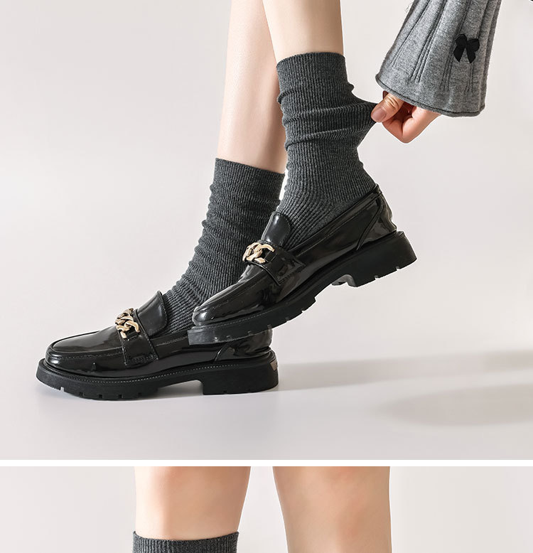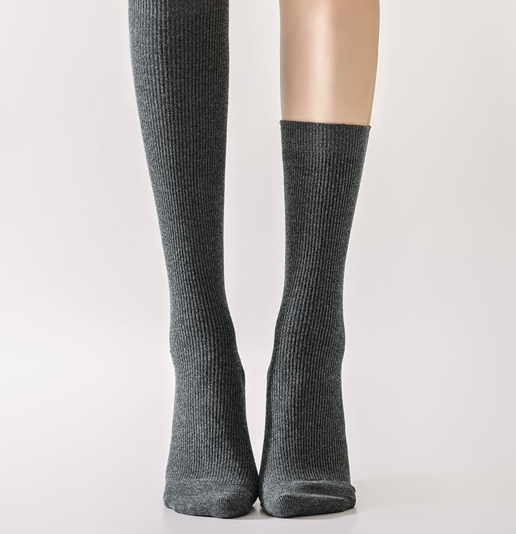 秋冬の新しいカシミヤの靴下の女性の日本の復古の双針の靴下の縦縞のカシミヤの積み重ねの靴下の純色の中筒の女性の靴下