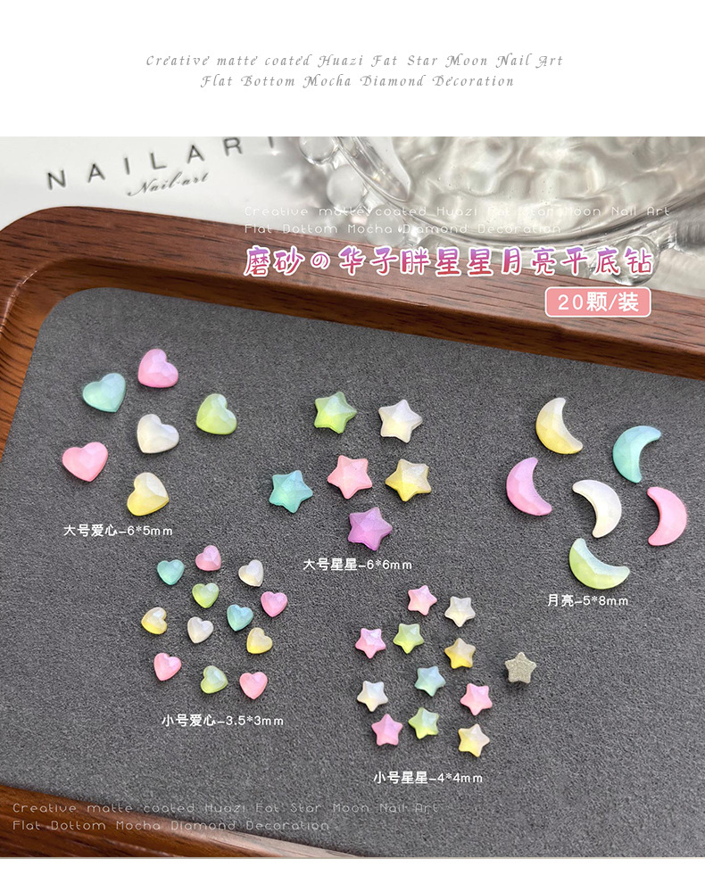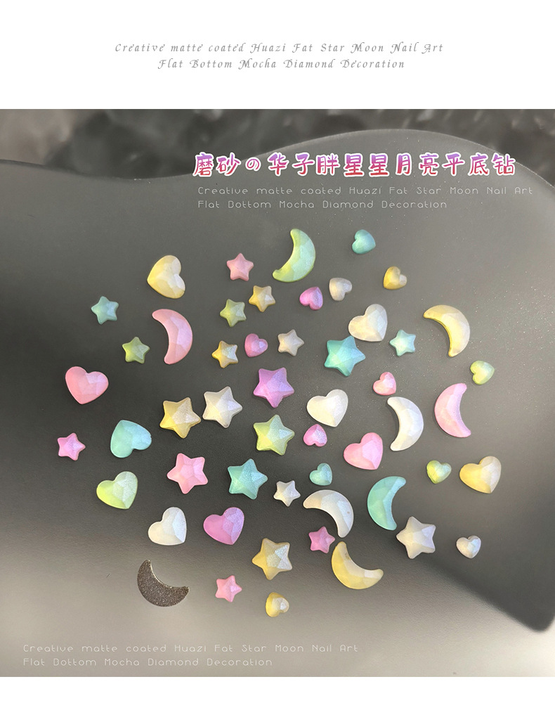 摩卡星星月亮美甲饰品马卡龙系列胖五角星平底指甲钻树脂装饰批发