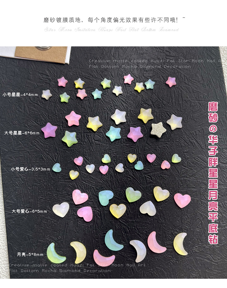 仿华子幻彩星星耳钉饰品月亮平底钻磨砂爱心diy穿戴甲指甲钻配饰