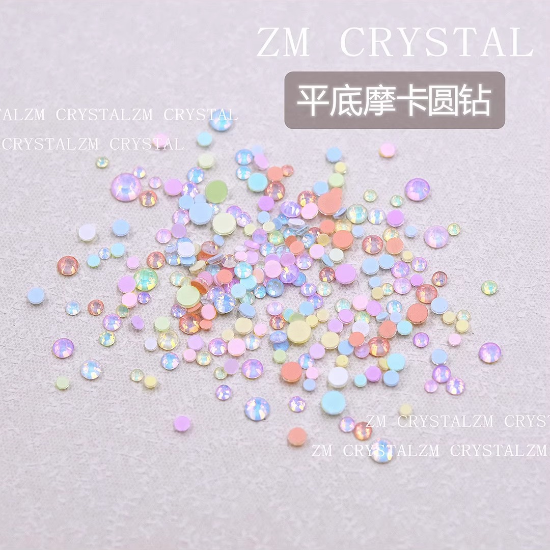 ZM新款平底摩卡圆钻彩色碎钻圆形堆钻网红超闪指甲钻美甲钻饰品