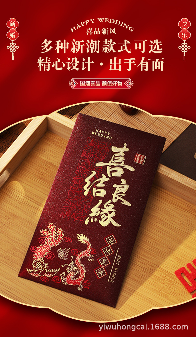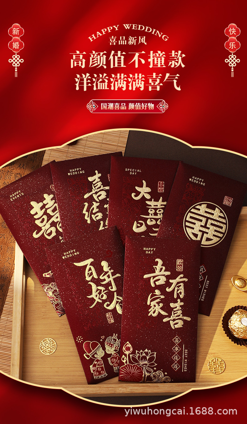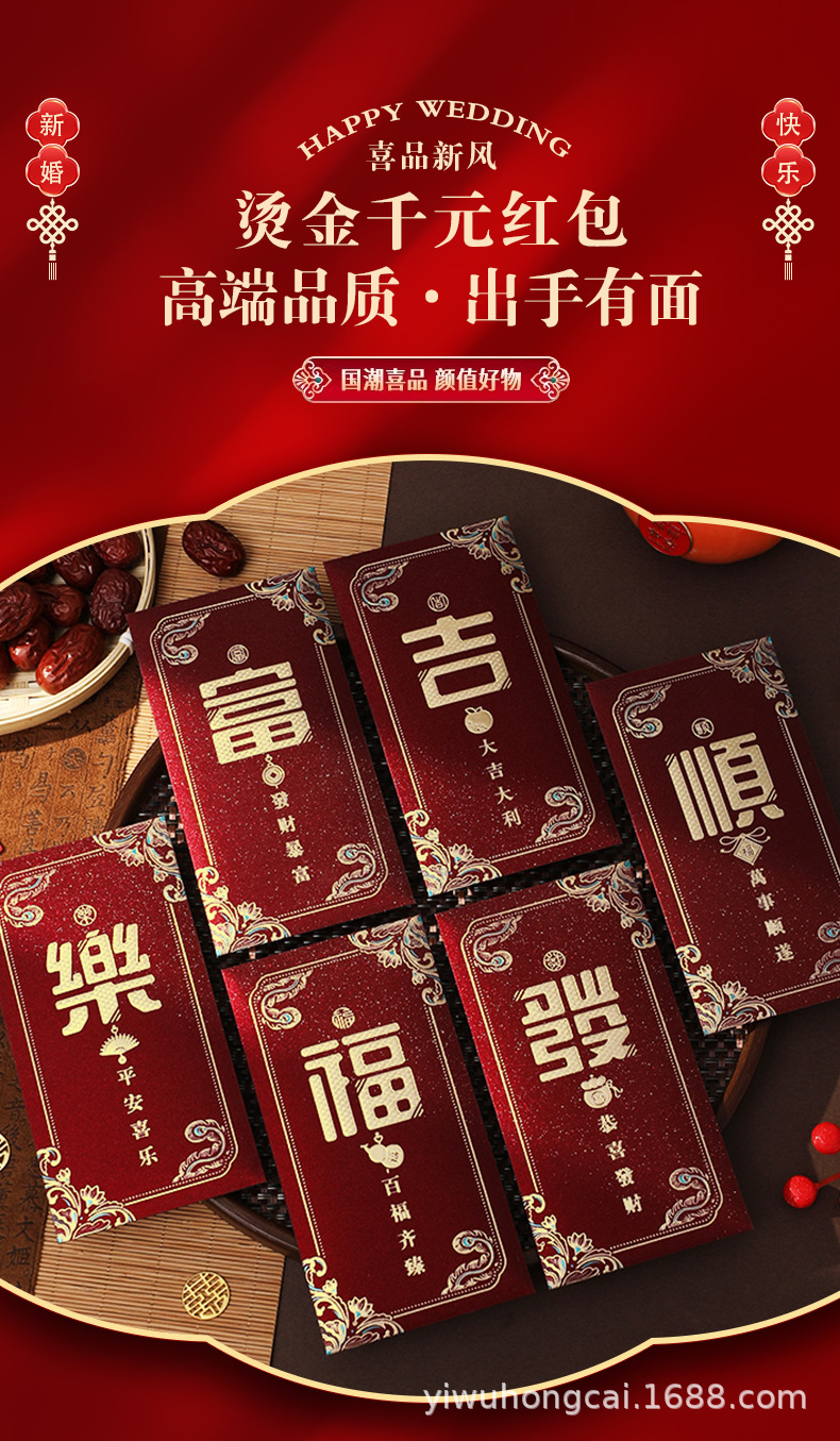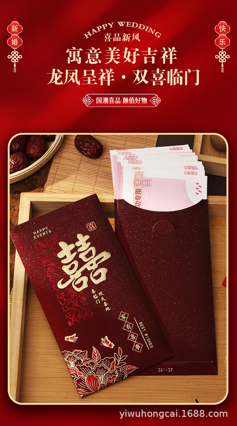 新款结婚千元红包安哥拉红婚礼喜字大号红包新年祝福送礼随份利是