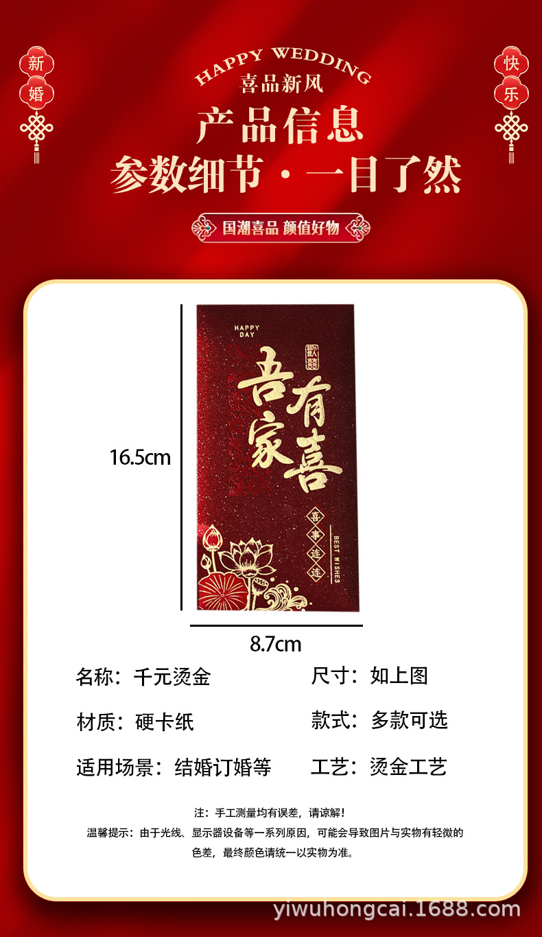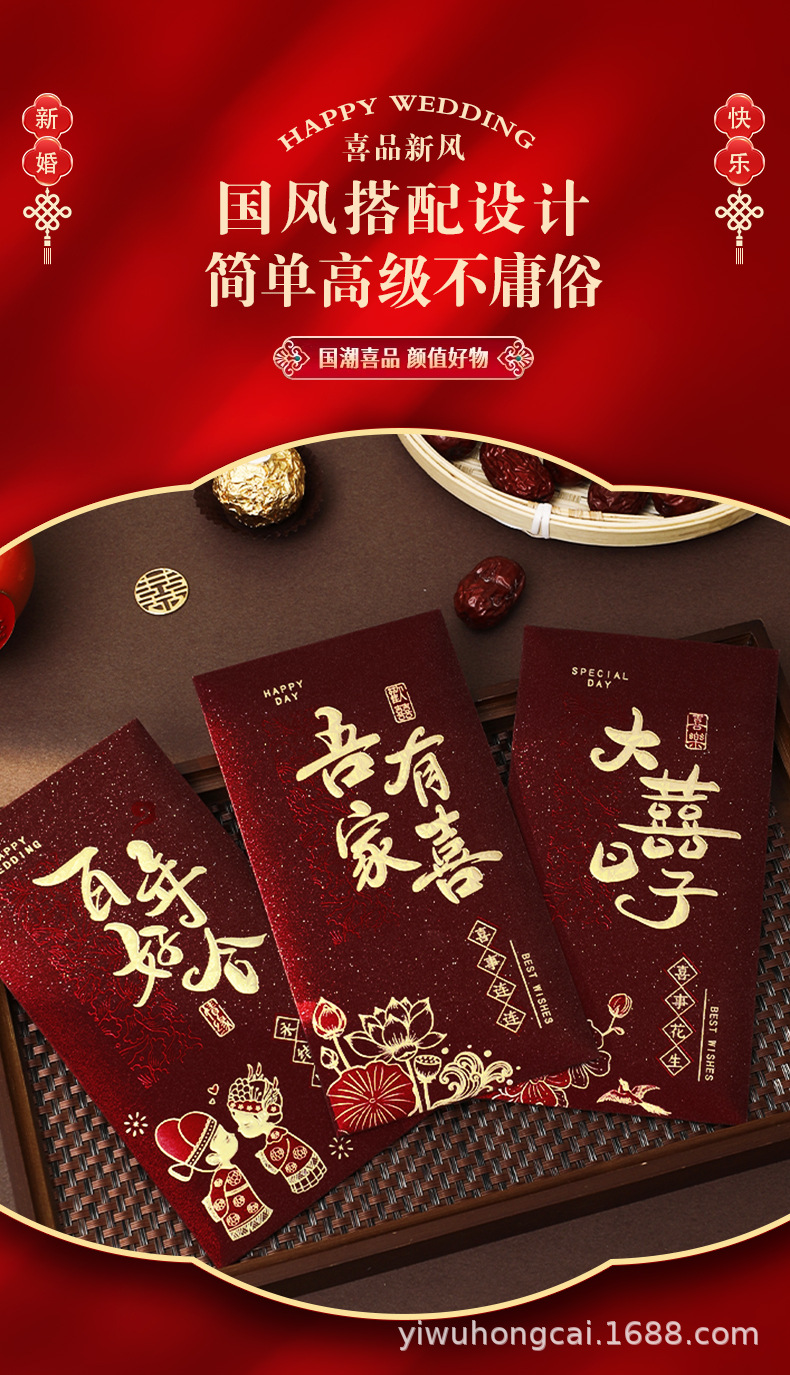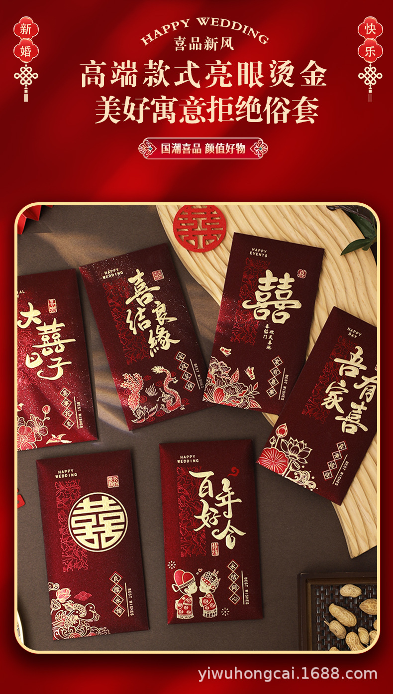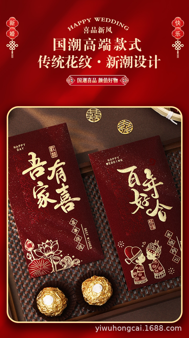 新款结婚千元红包安哥拉红婚礼喜字大号红包新年祝福送礼随份利是