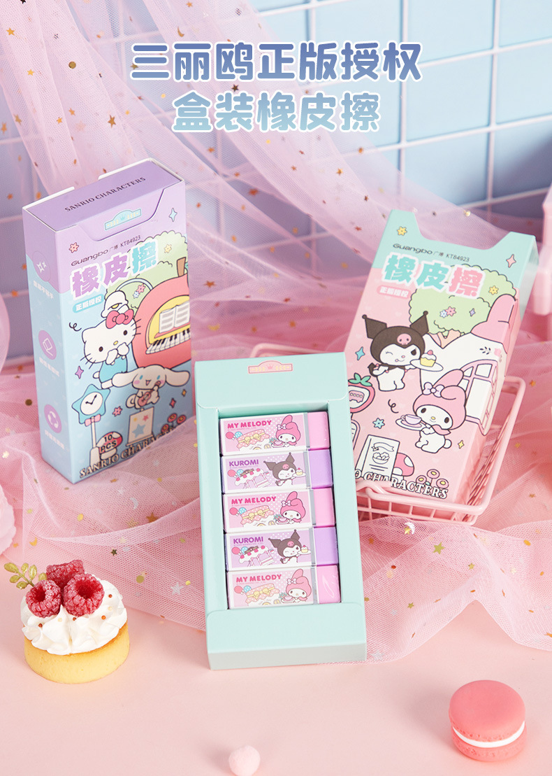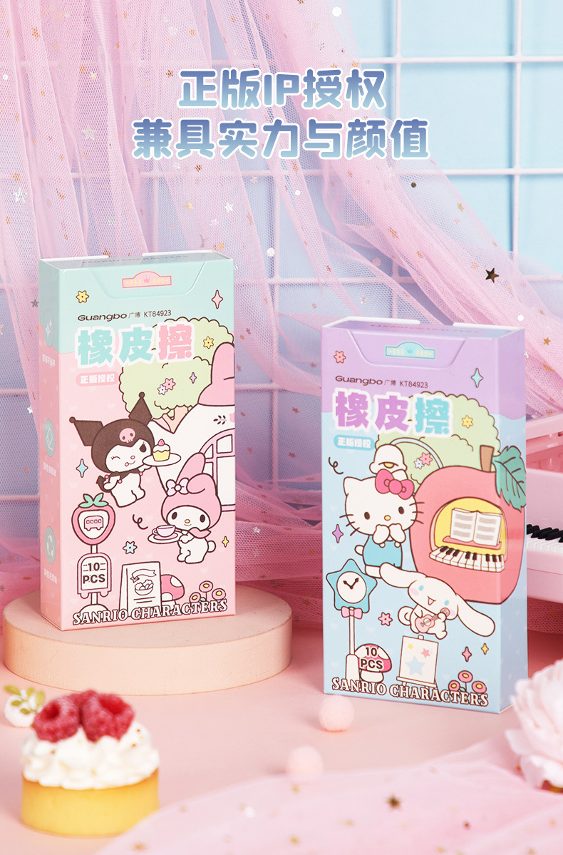 广博三丽鸥系列儿童橡皮凯蒂猫大耳狗可爱高颜值学生铅笔橡皮批发