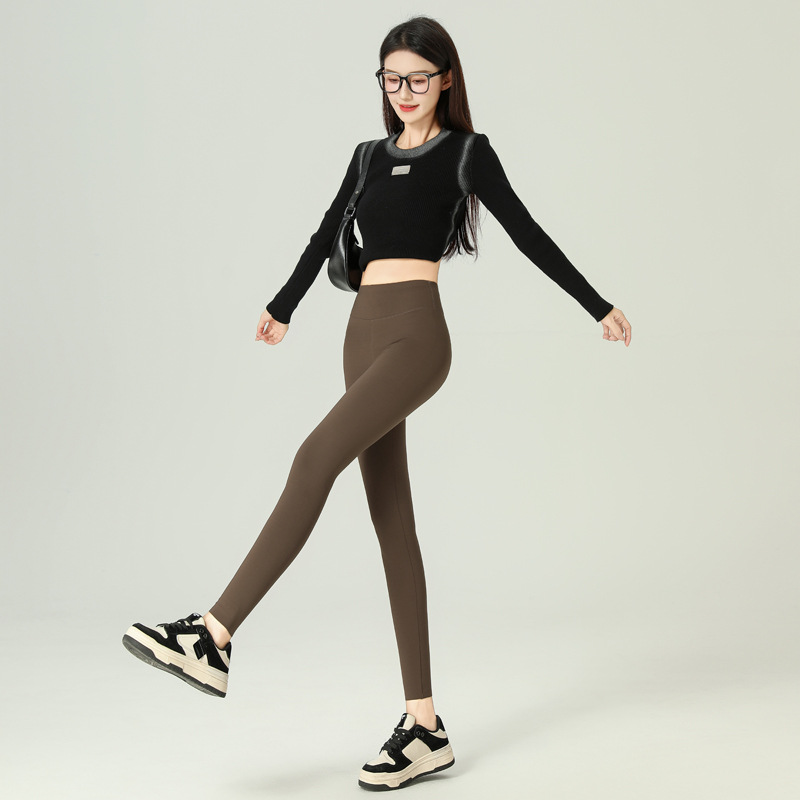 女性用グレーシャークパンツ、2025年秋冬ハイウエスト痩身ヨガタイツ、暖かいベルベットレギンス、9点丈
