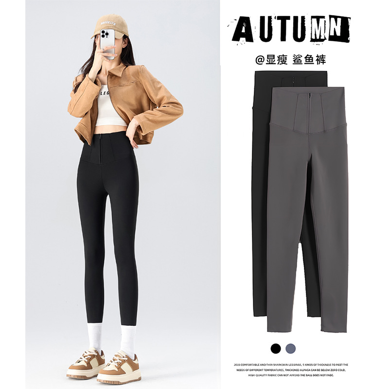 拉链鲨鱼裤女外穿春秋加绒2025新款打底收腹瑜伽裤修身紧身裤提臀