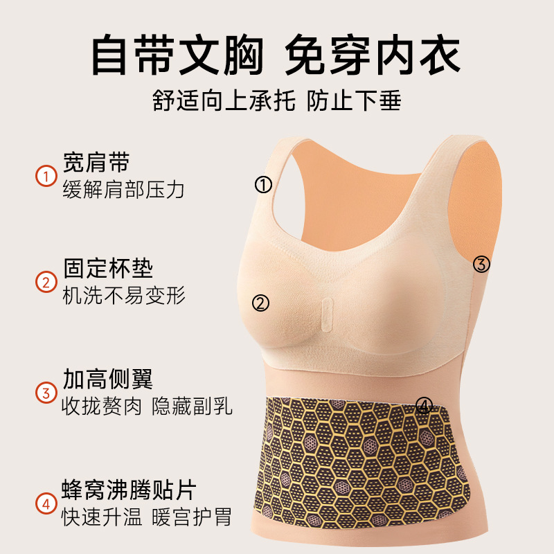 8621秋冬磨毛打底肌底衣10A抗菌无痕裸感免穿文胸显瘦保暖背心女