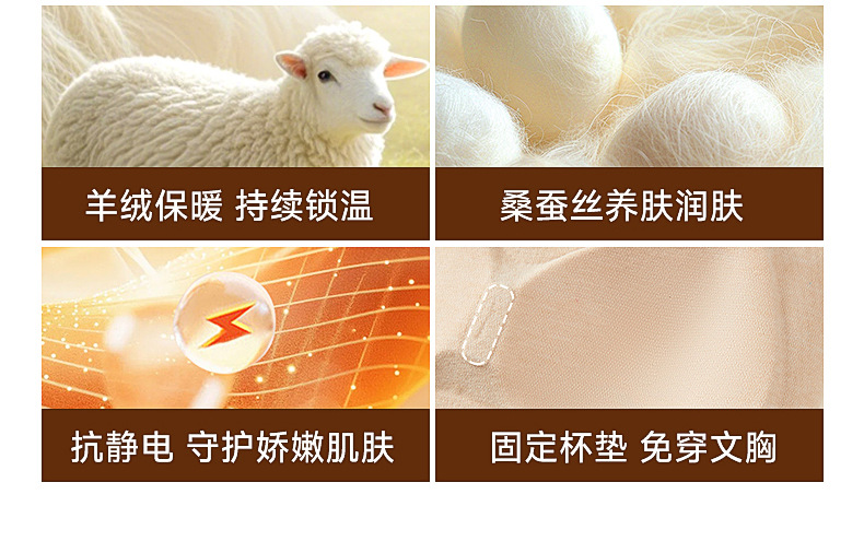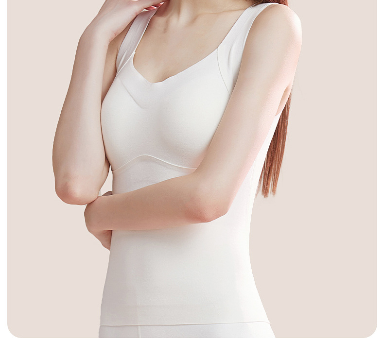秋冬无痕保暖内衣女带胸垫德绒发热内搭抗菌羊绒蚕丝打底保暖背心