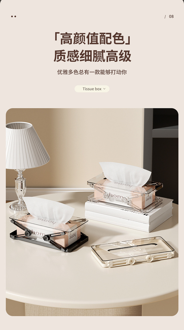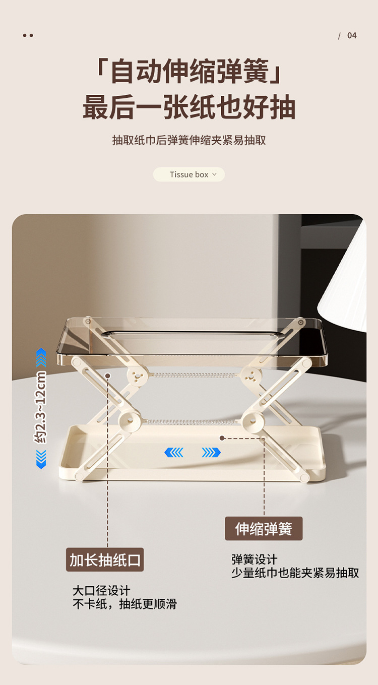 新款高级感可升降抽纸收纳盒创意弹簧抽纸盒客厅卧室餐家用纸巾盒