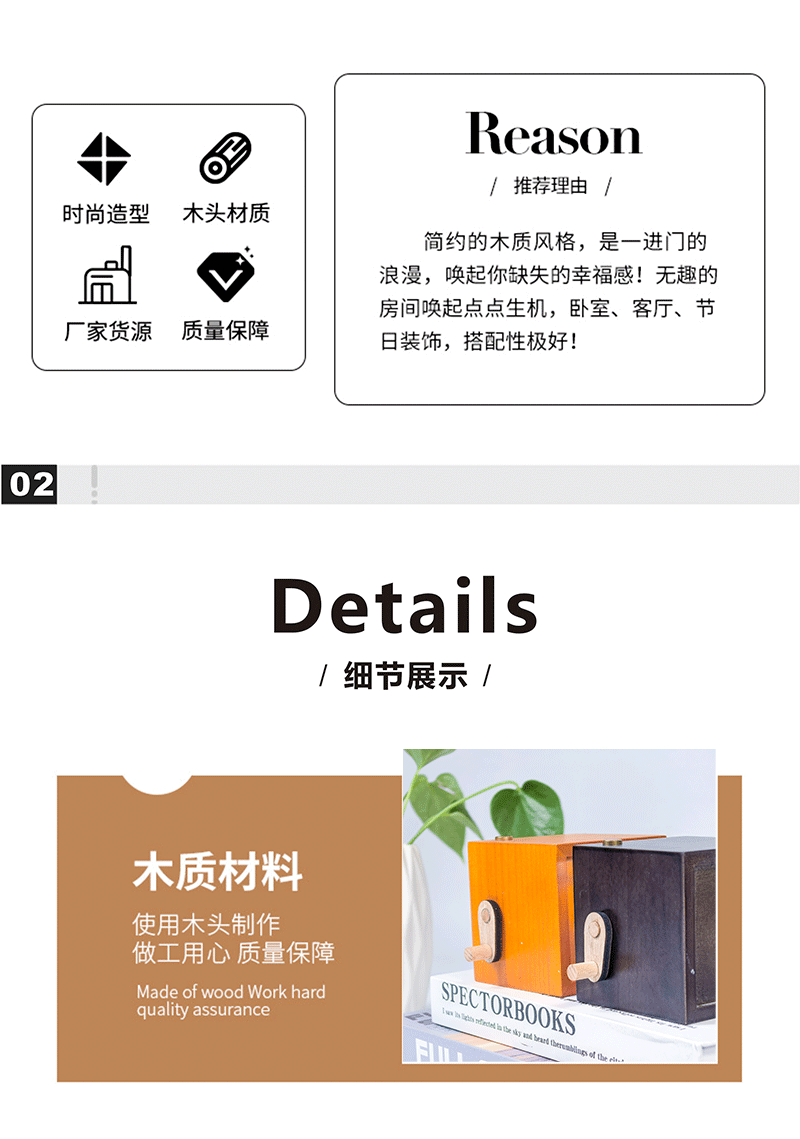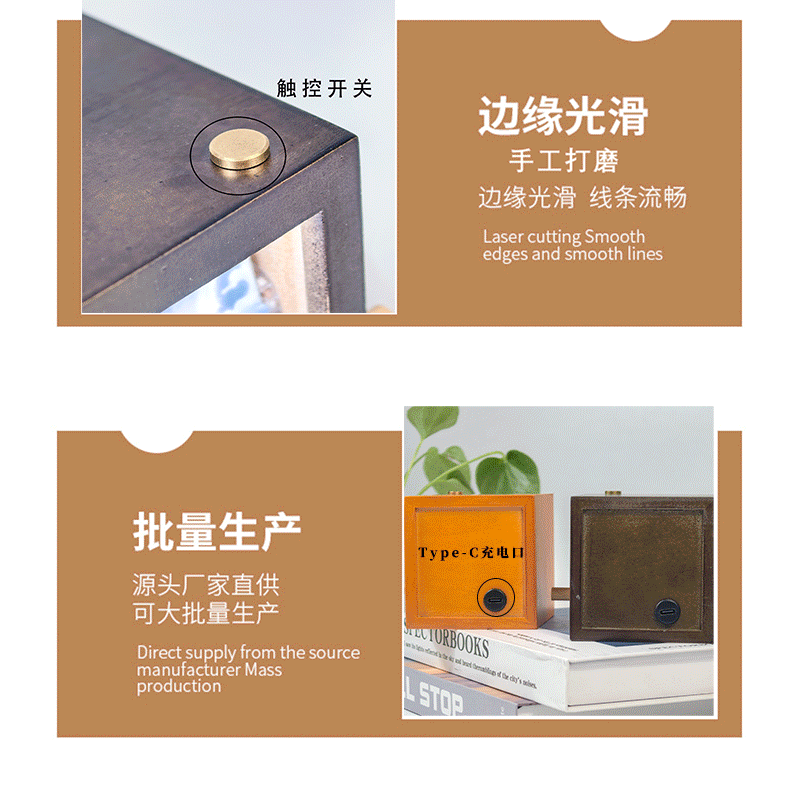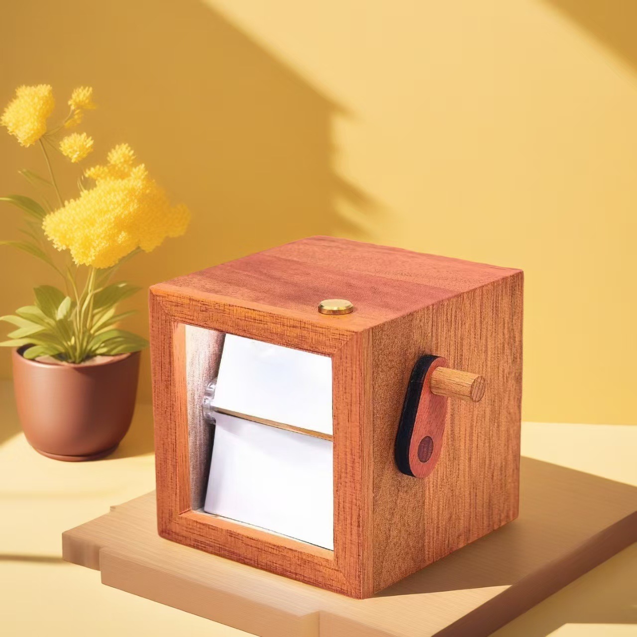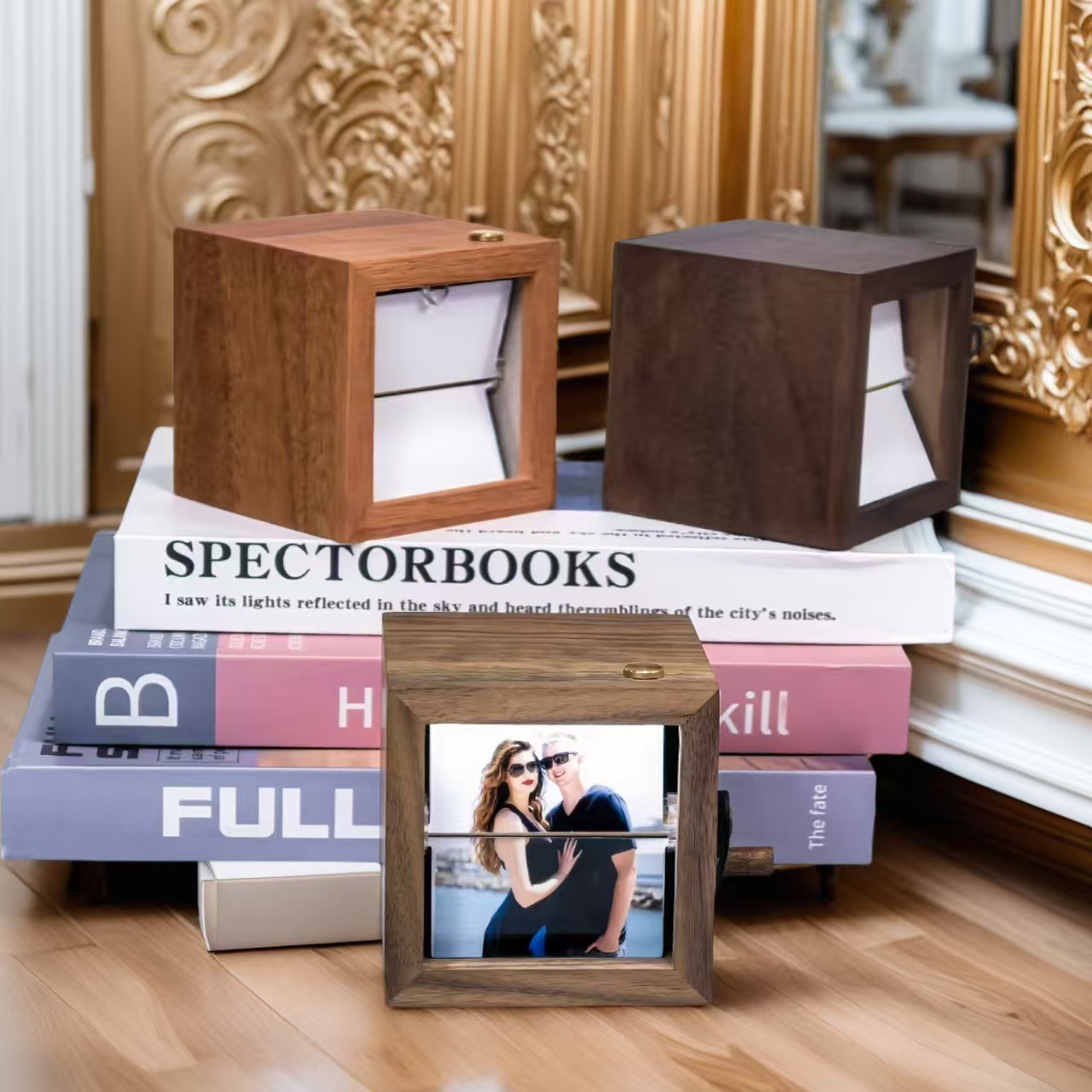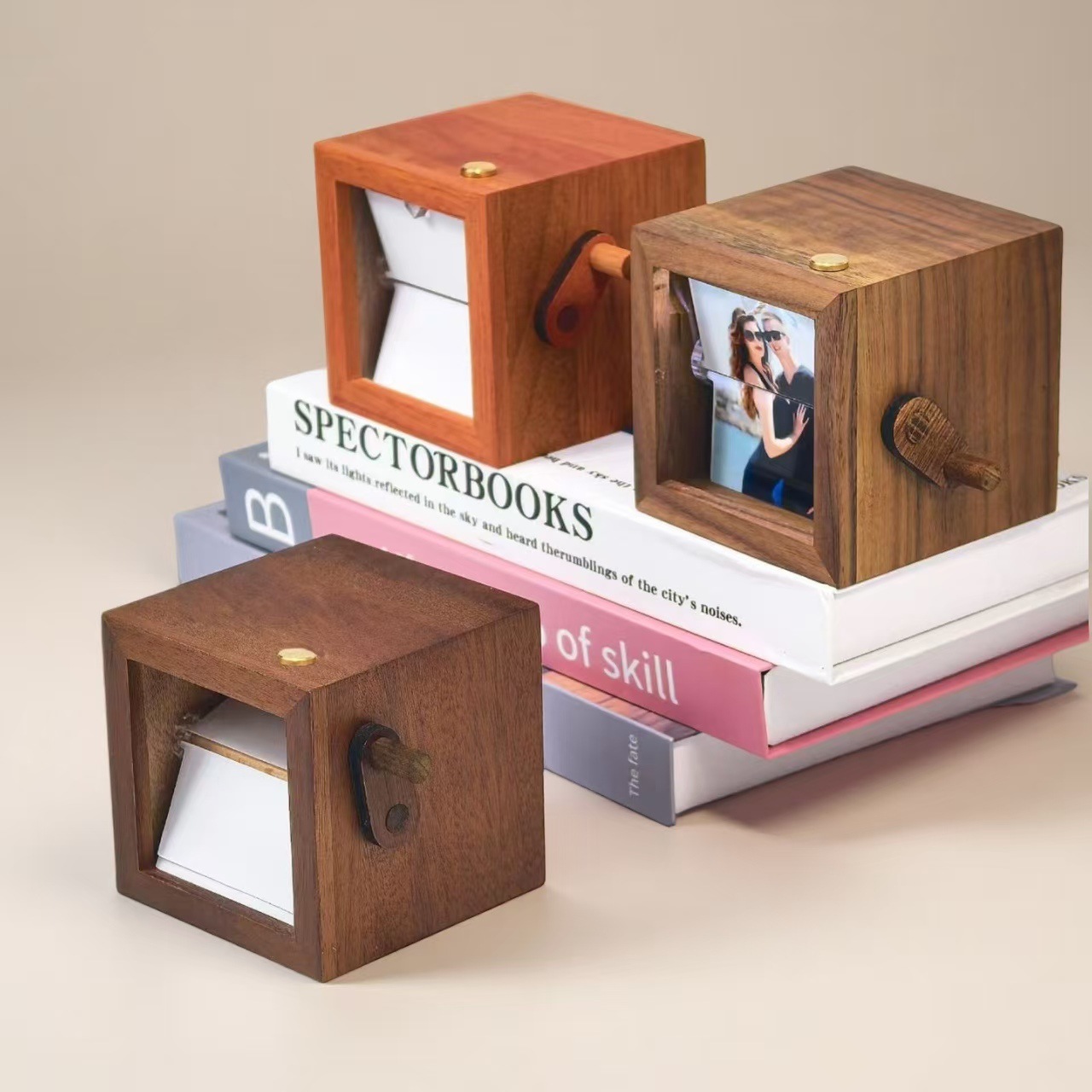 跨境新品木制情侣定制发光木质机械手摇动画翻页书相册照片机木盒