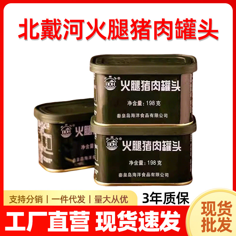 北戴河ランチミート缶詰、箱ごと、便利な即席食品、アウトドア、家庭用バーベキュー、鍋の食材、長期保存食品