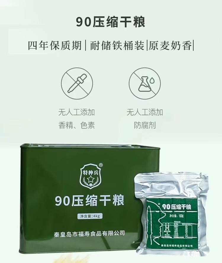 食品储备秦皇岛特种兵90铁桶家庭饼干8斤户外压缩干粮现货应急