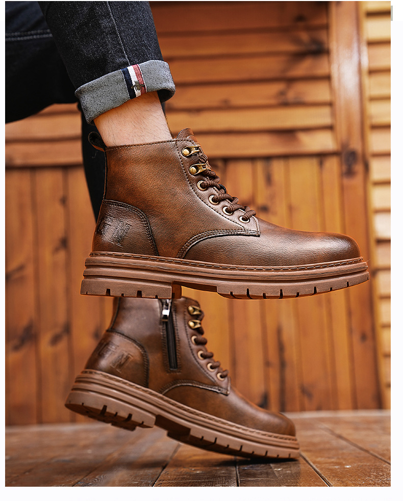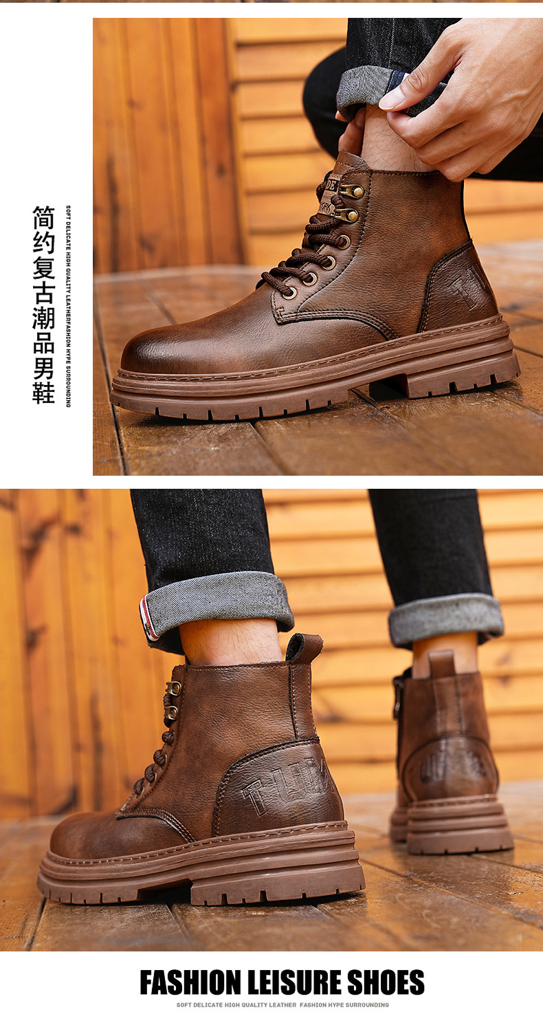 マーティンブーツ男秋の高組防水カジュアルシューズの流行はレトロな靴の英倫風工装ショートブーツ男靴