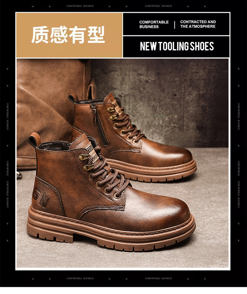 英伦复古马丁靴男士秋季厚底男鞋工作高帮工装皮鞋防滑休闲皮靴子