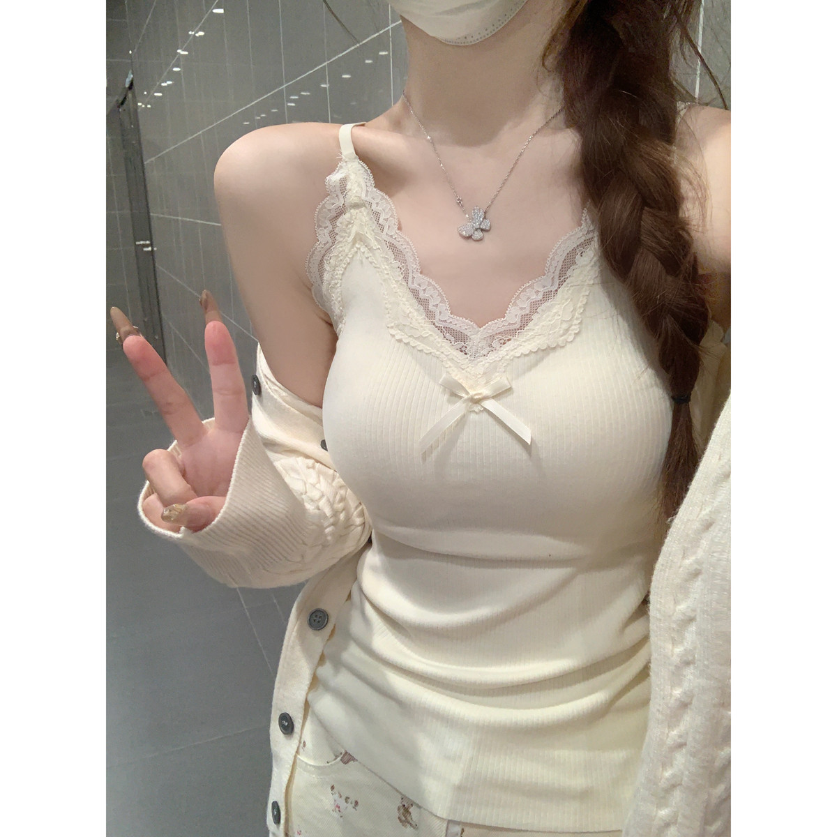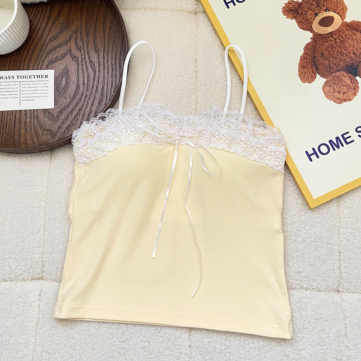 純欲風レースストラップベスト女性春夏修身蝶結び胸パッド付きの外着ギャル底上着