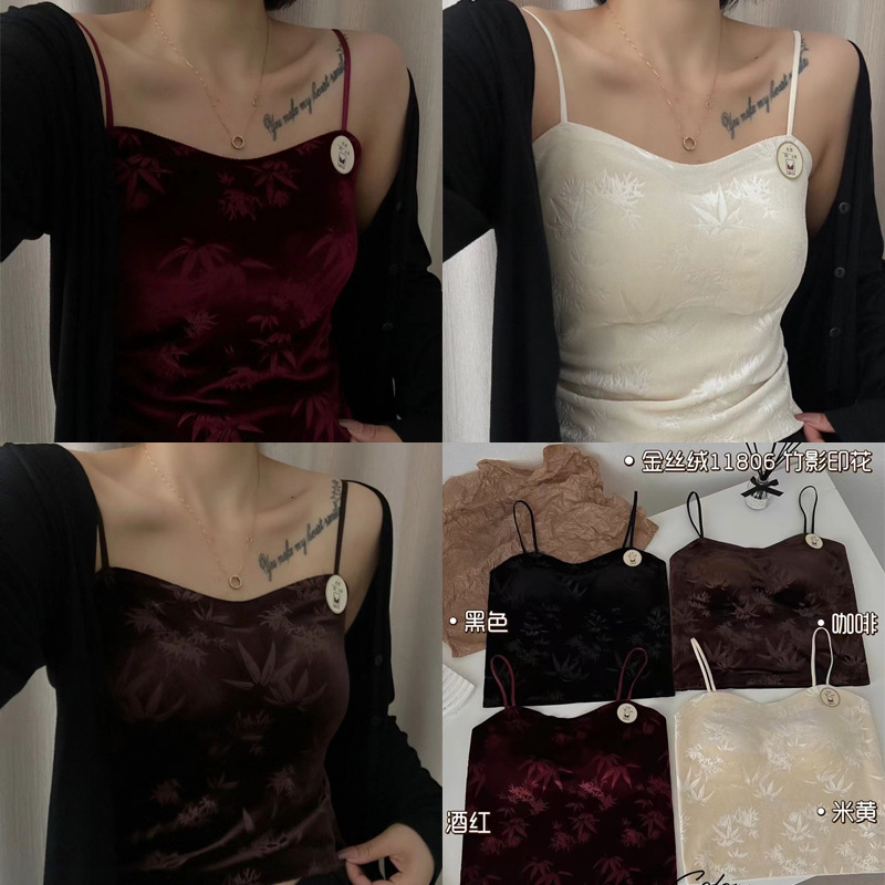 クロスボーダーの新型秋冬の中に金のベルベットの一体カップのストラップを掛けて胸のパッドの下着の女性の外に百合ベストのvネックを着ます。