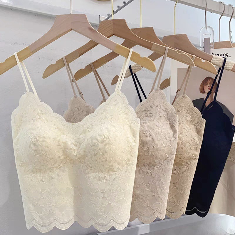 法式蕾丝花边吊带背心女夏外穿内搭带胸垫显瘦美背无袖抹胸上衣