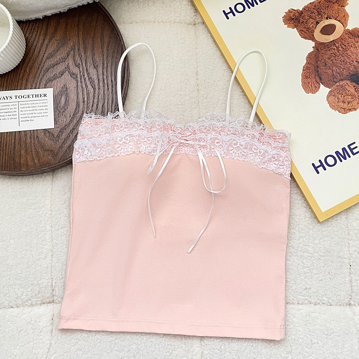 跨境爆款感甜美蕾丝蝴蝶结吊带背心女带胸垫内搭外穿美背打底上衣