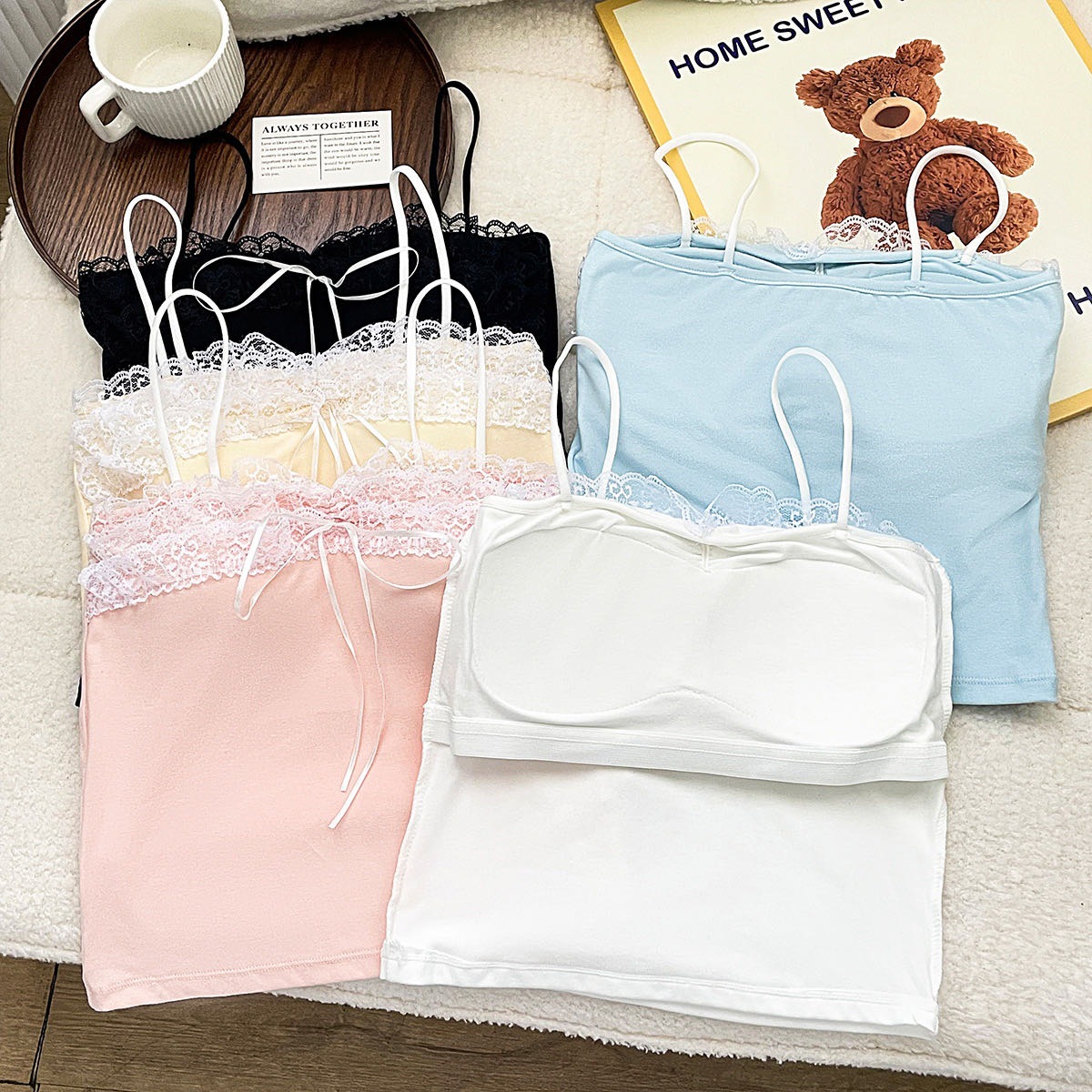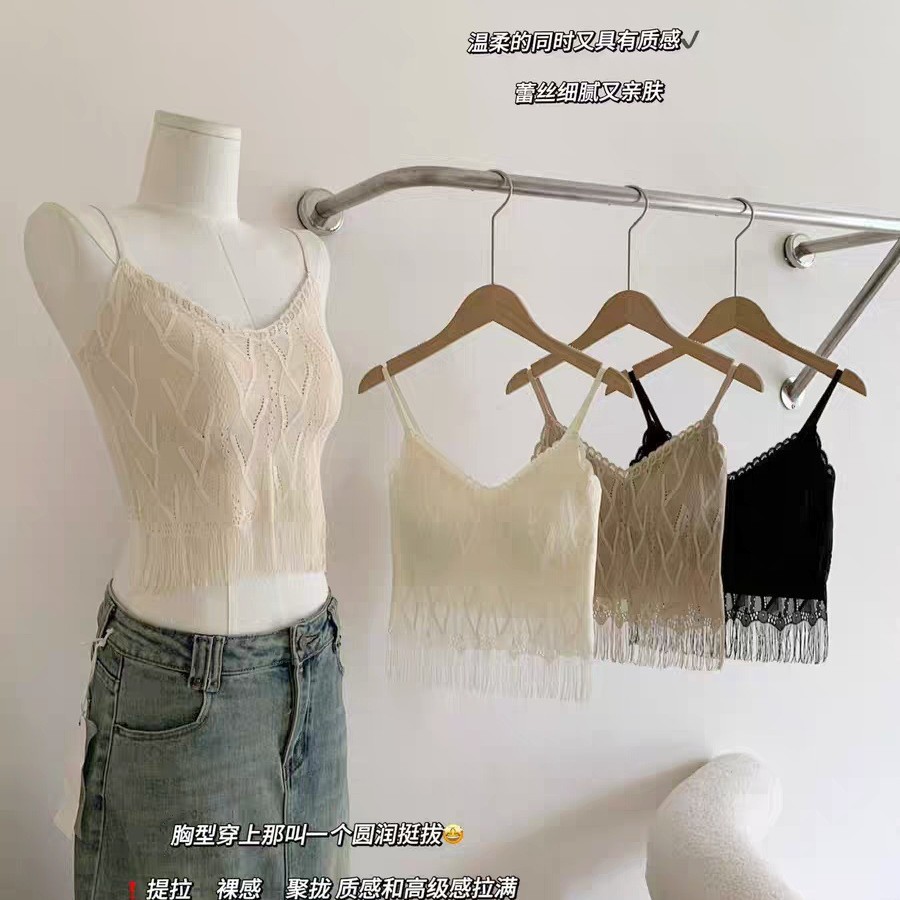 新しいスタイルのタッセルレースキャミソールレディース夏薄型胸パッド付きスリムインナーベルト美しいバックボトミングトップ