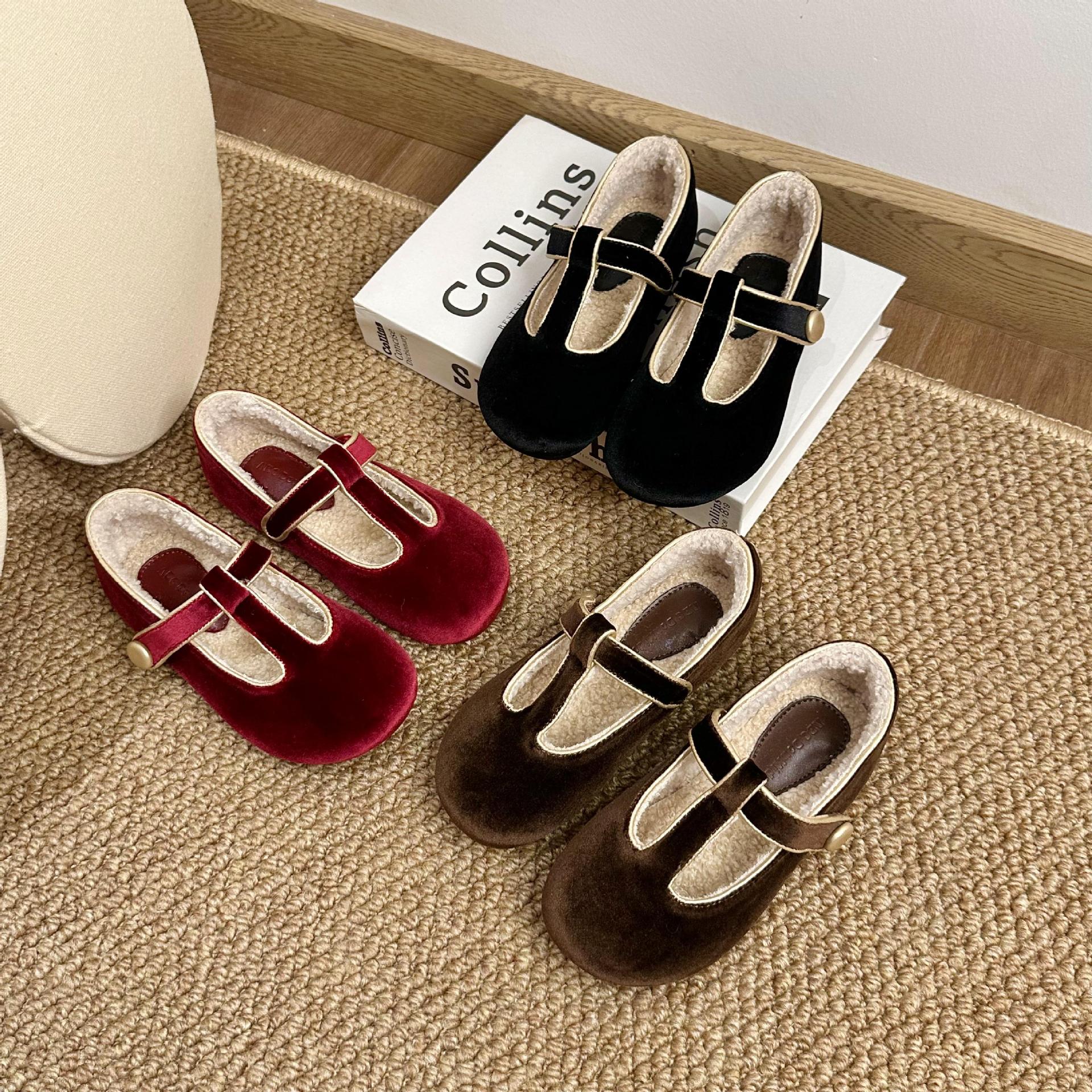 冬の新しいベルベットの韓国のベルベットの黒いダンスシューズの女の子の王女の靴の洋風の靴の靴の小さい靴の柔らかい靴