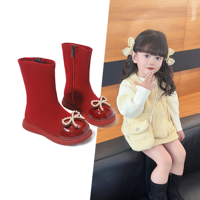 女の子ブーツ2024冬の新型英倫風洋気児童ブーツ滑り止めショー女の子赤ちゃんベルベットブーツ