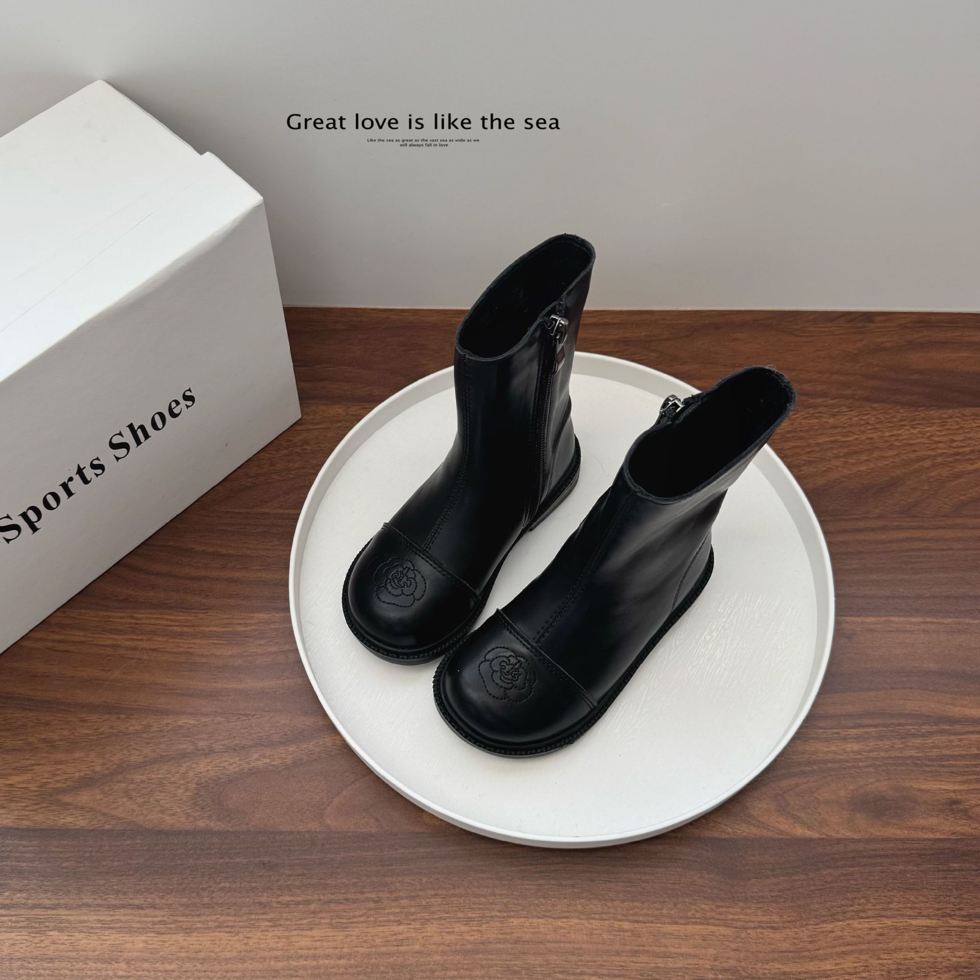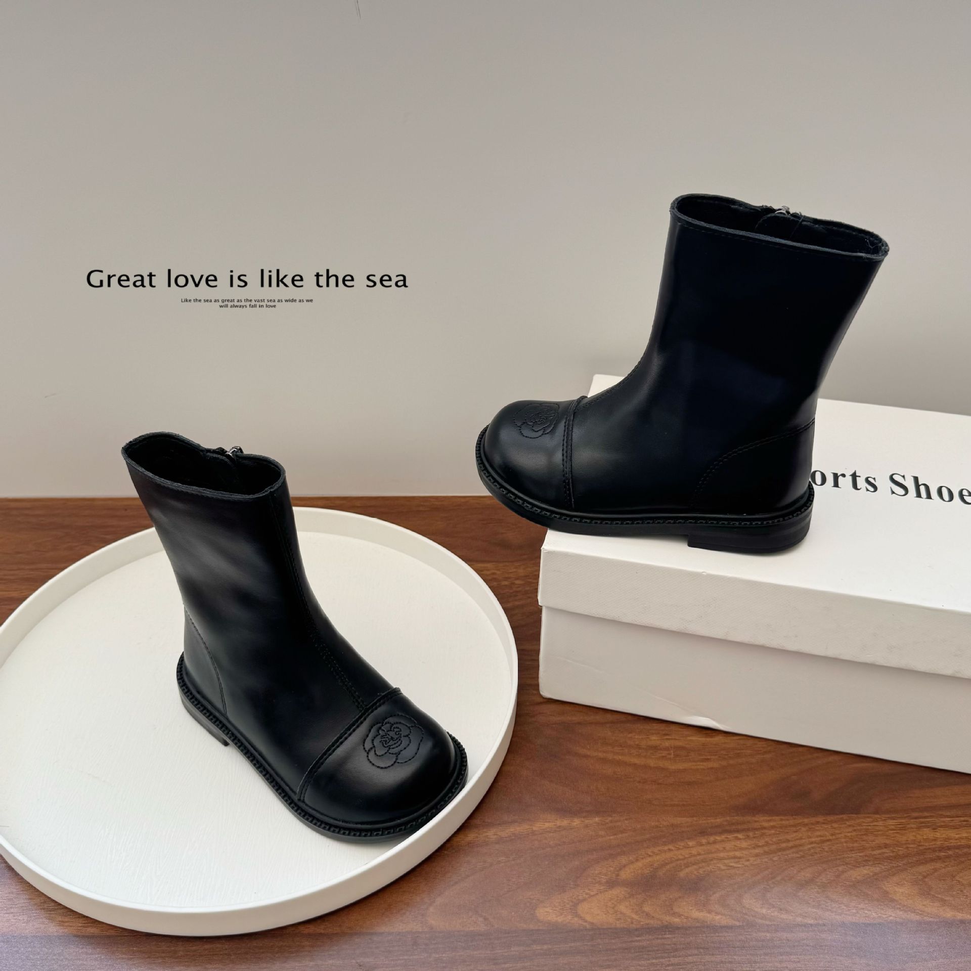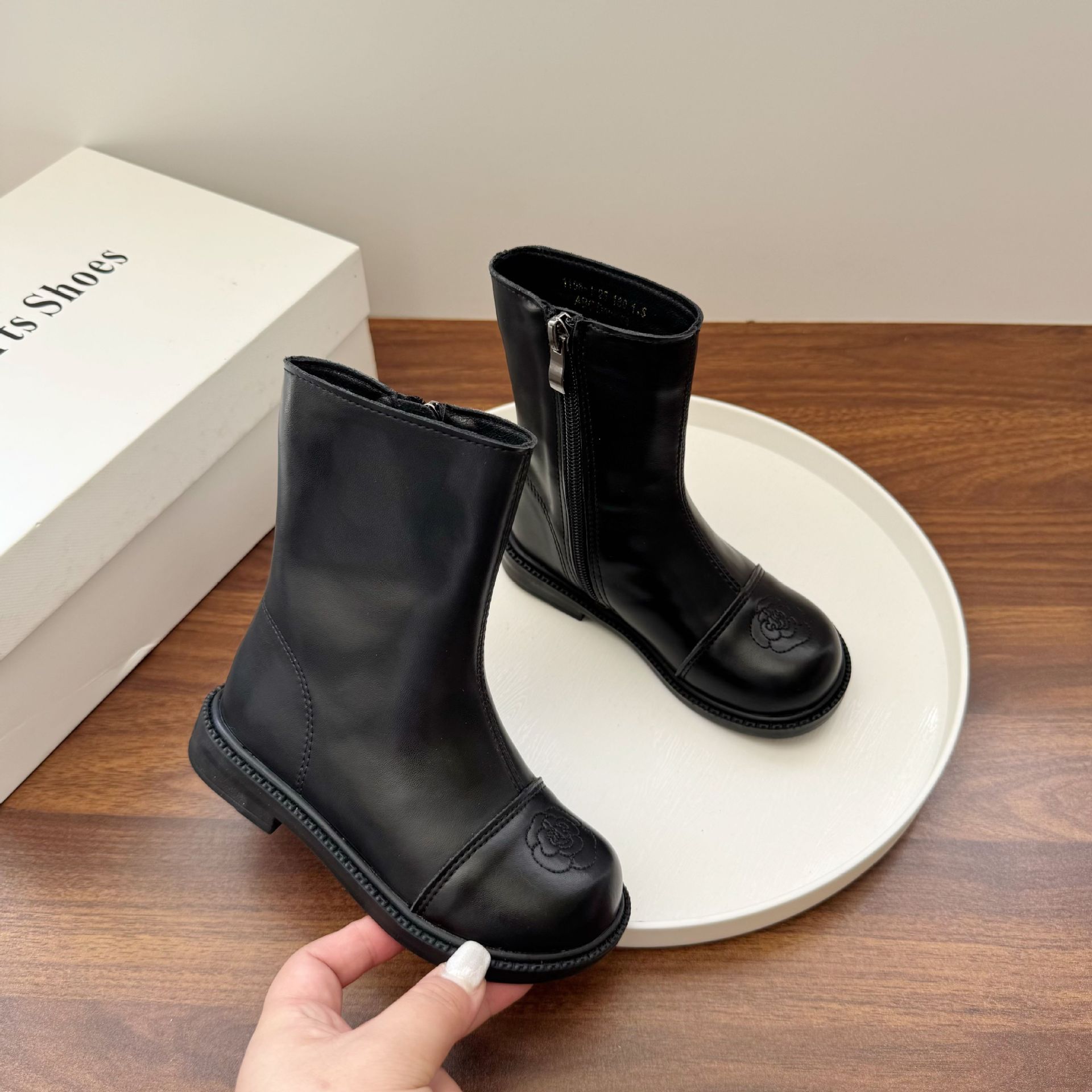 ガールズブーツ2024新型秋冬ブーツ子供用ブーツ女性大童ツバキ中筒ブーツ秋革ブーツ