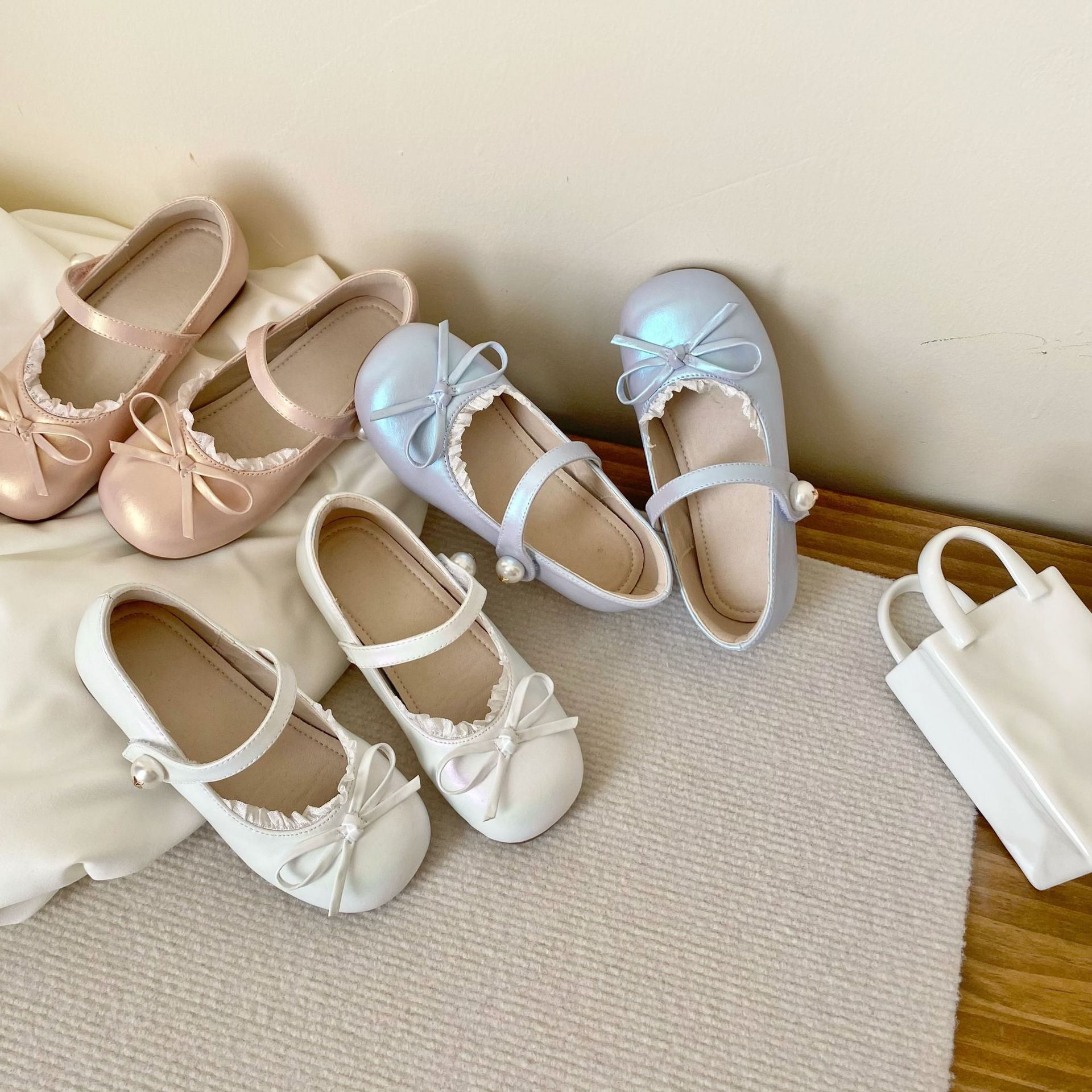 女の子用オールシーズンシューズ オールシーズン新作フラットシューズ 小さな革靴 可愛いリボン付きバレエシューズ プリンセスシューズ