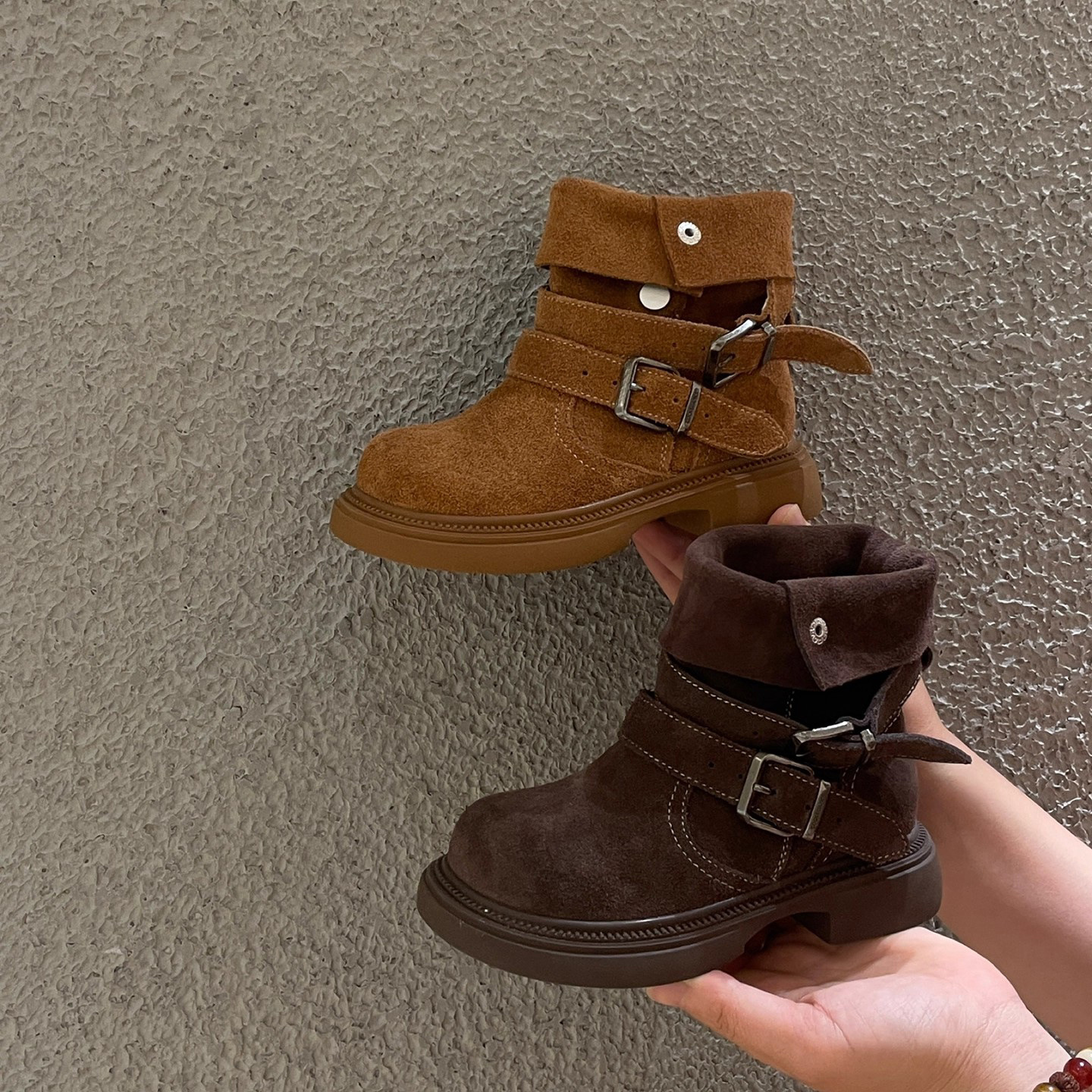 儿童复古粗跟翻折两穿女童美拉德增高马丁靴2025秋冬新款厚底短靴