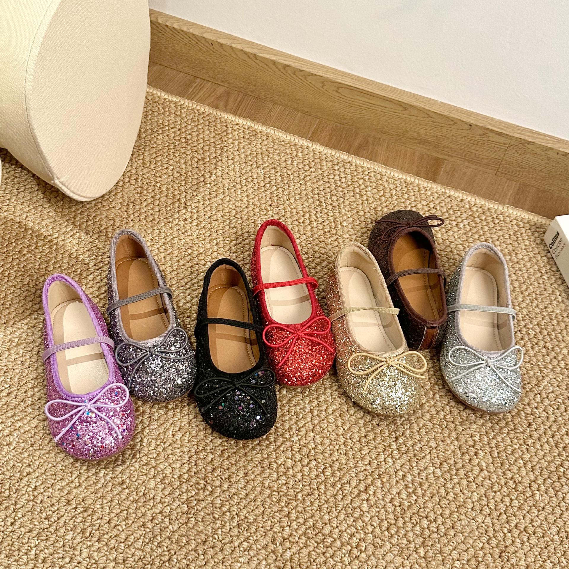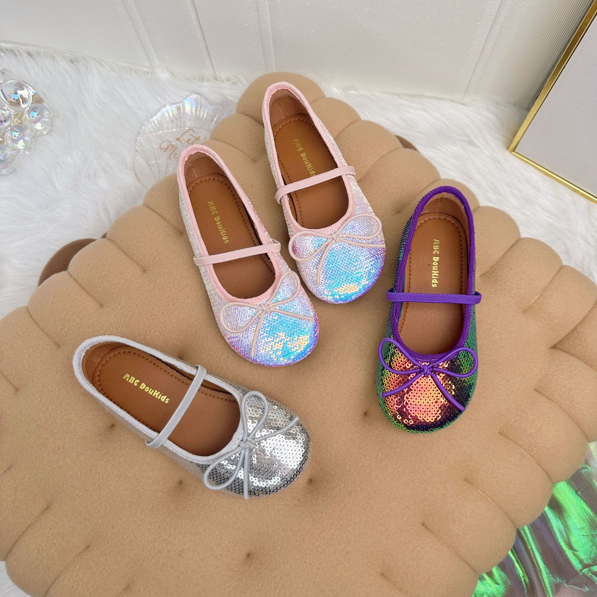 女の子用プリンセスシューズ2025バレエシューズソフトソールキャットウォークパフォーマンススパンコールフラットソールエルサ人魚姫シングルシューズリトルプリンセス