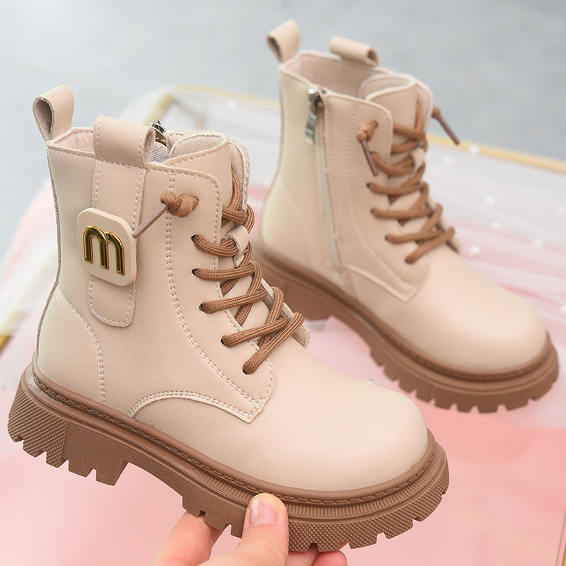 女の子用ショートブーツ 本革マーティンブーツ 2025秋冬新作 子供靴 おしゃれ 裏起毛 イギリス風レザーブーツ 中高生向け
