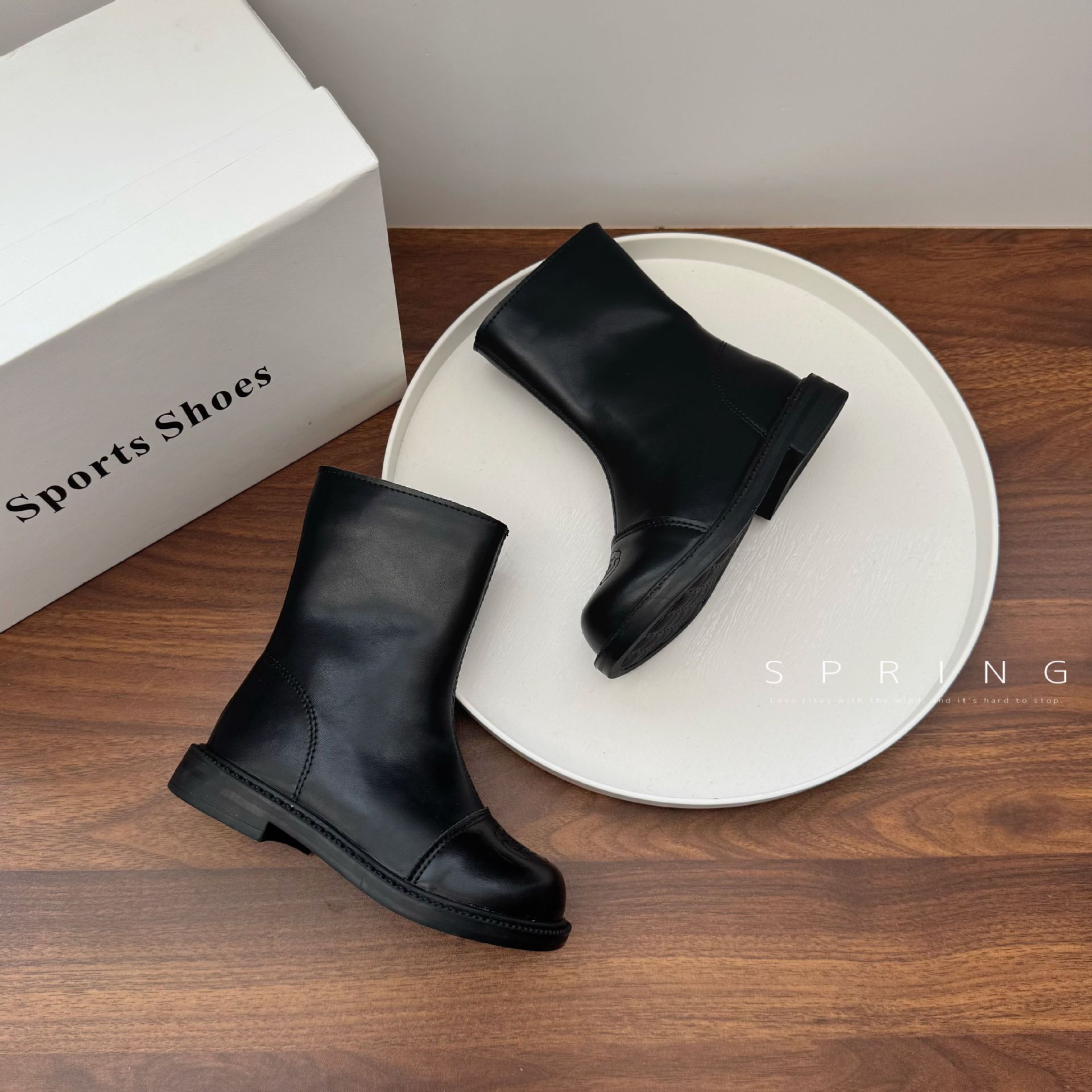 软皮女童短靴儿童单靴2025秋冬新款童鞋加绒二棉靴切尔西靴马丁靴