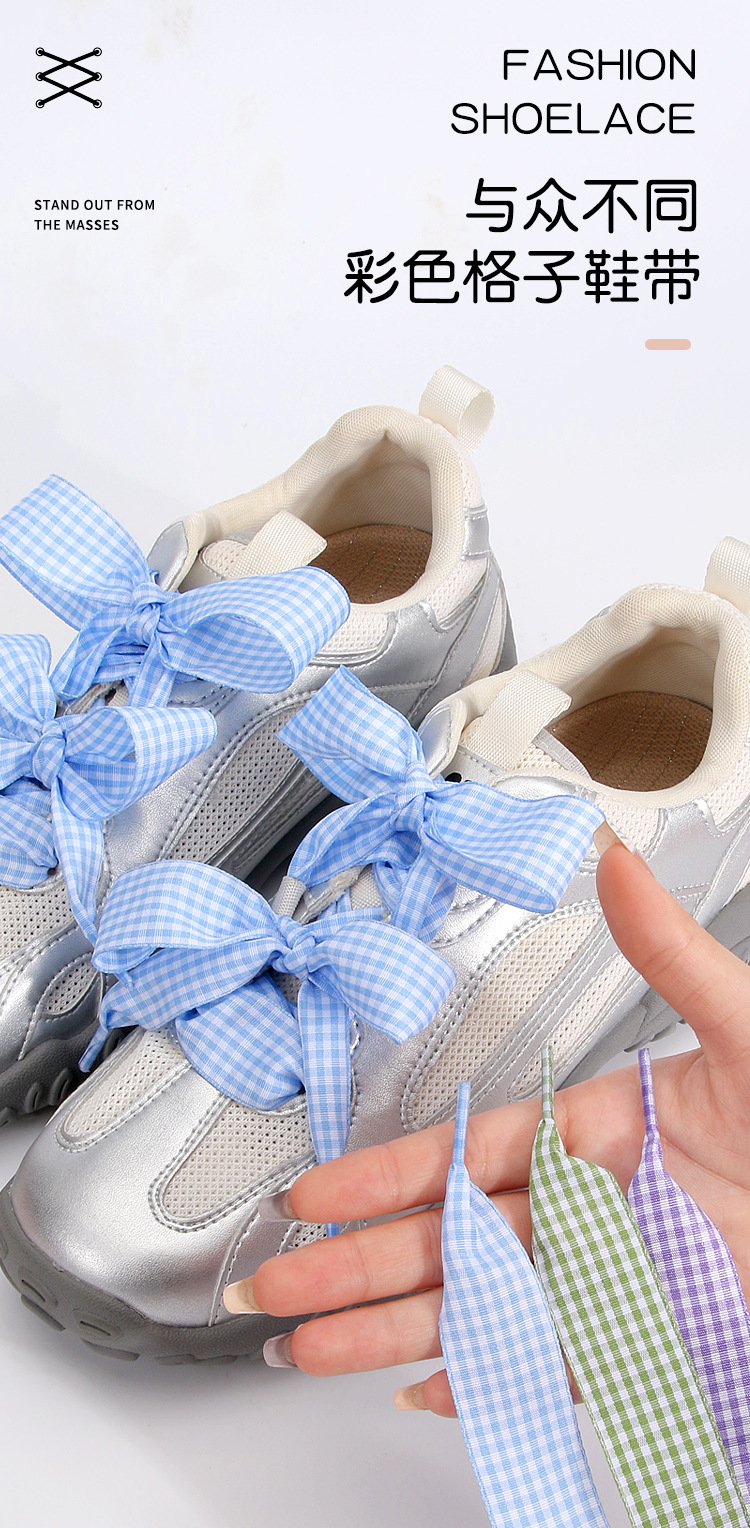 新款苏格兰风格子清新甜美彩色鞋带适配德训鞋赛车鞋帆布鞋鞋带