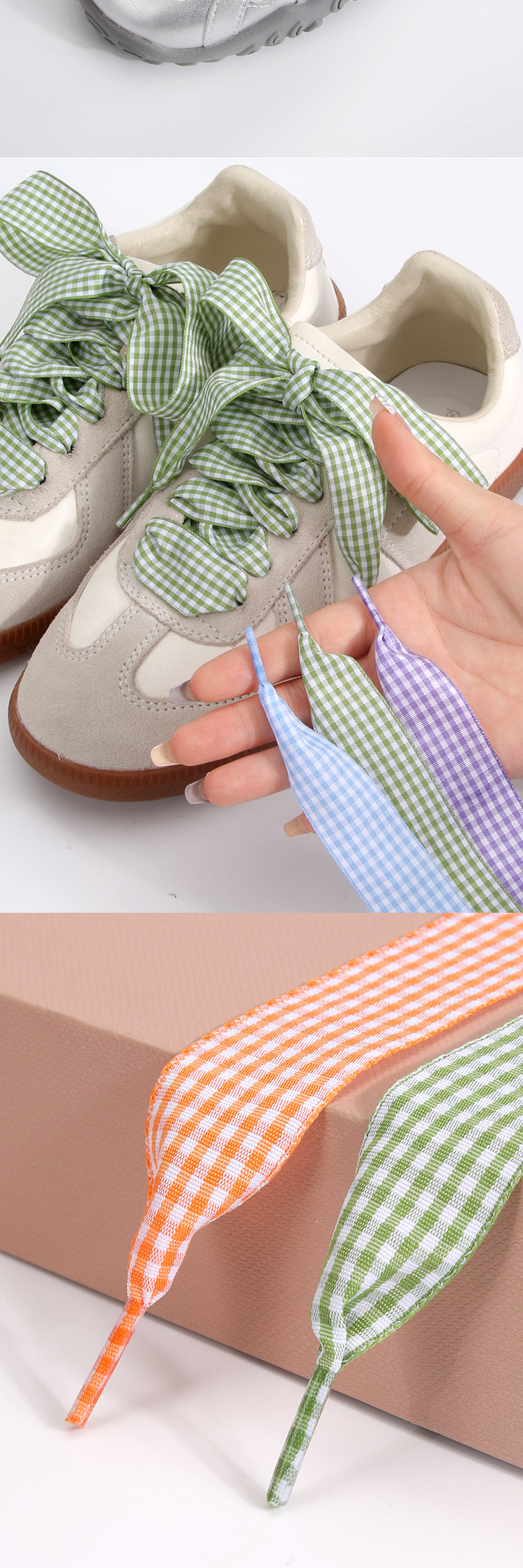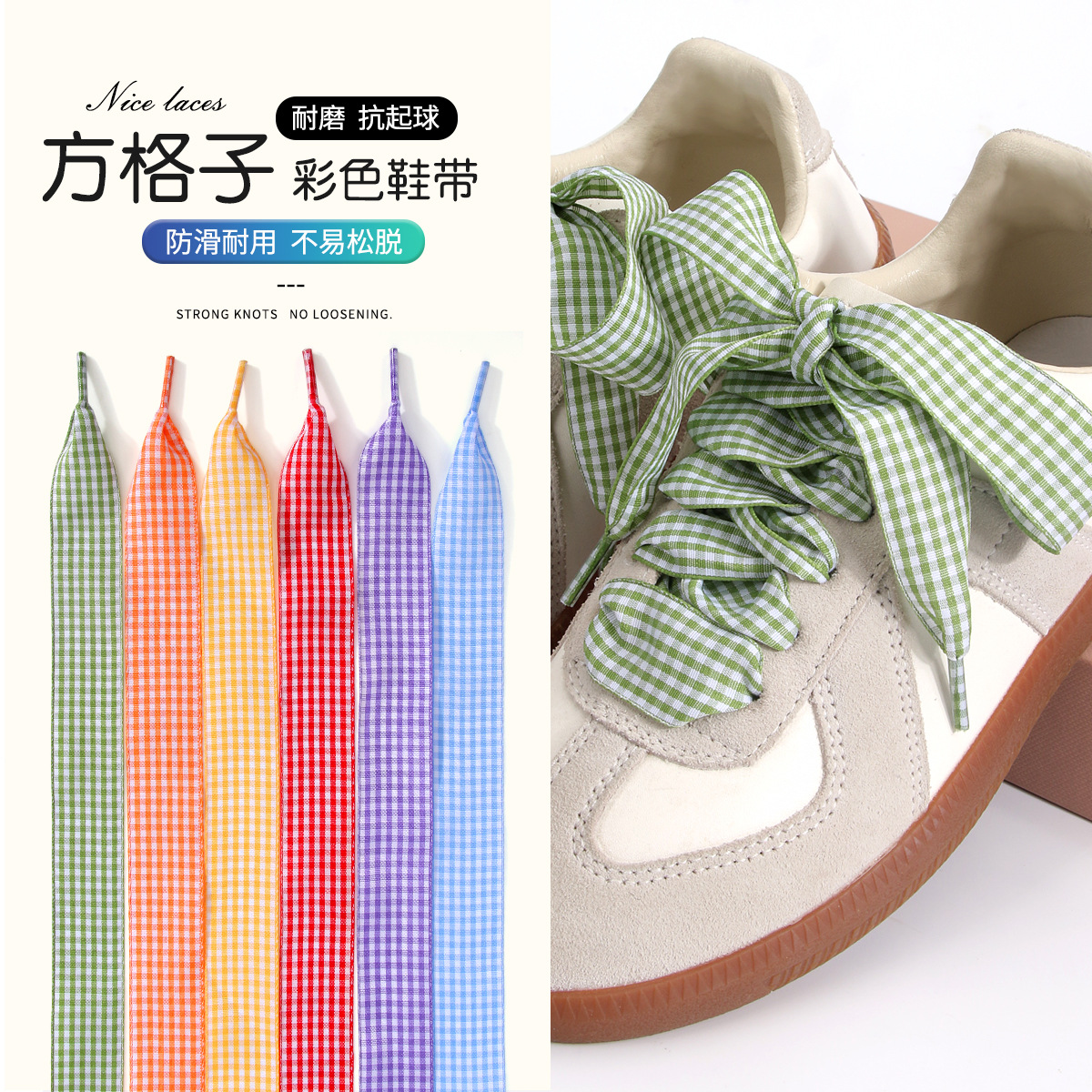 新款韩系ins清新甜美彩色格子鞋带适配德训鞋赛车鞋帆布鞋鞋带
