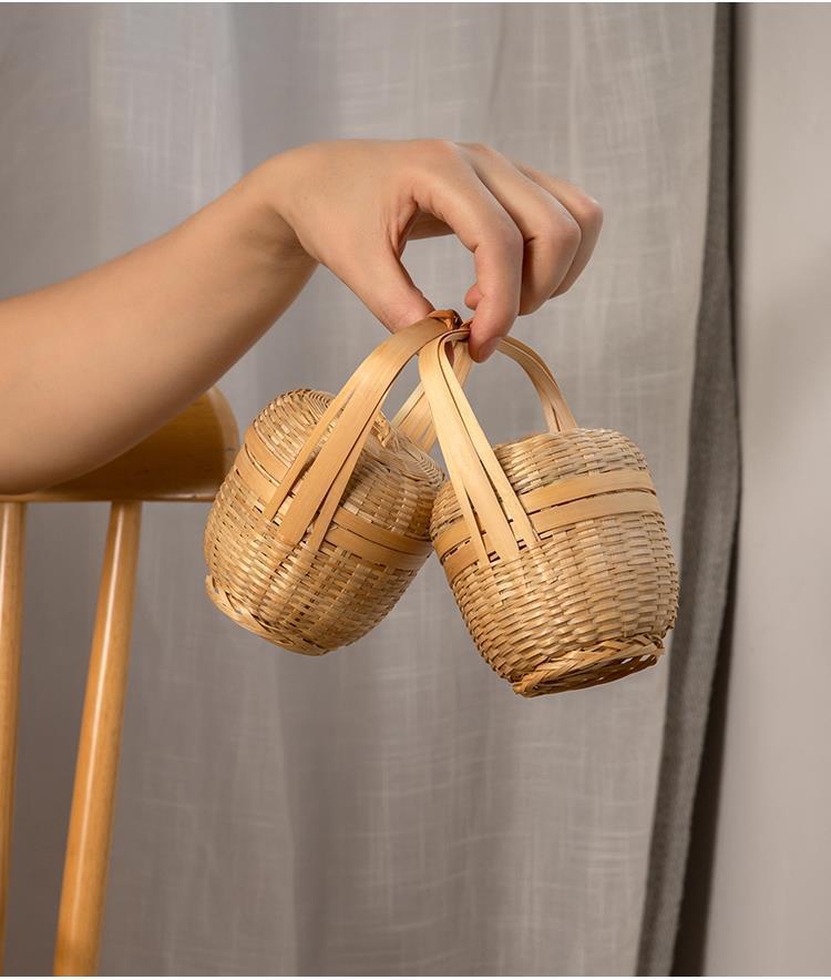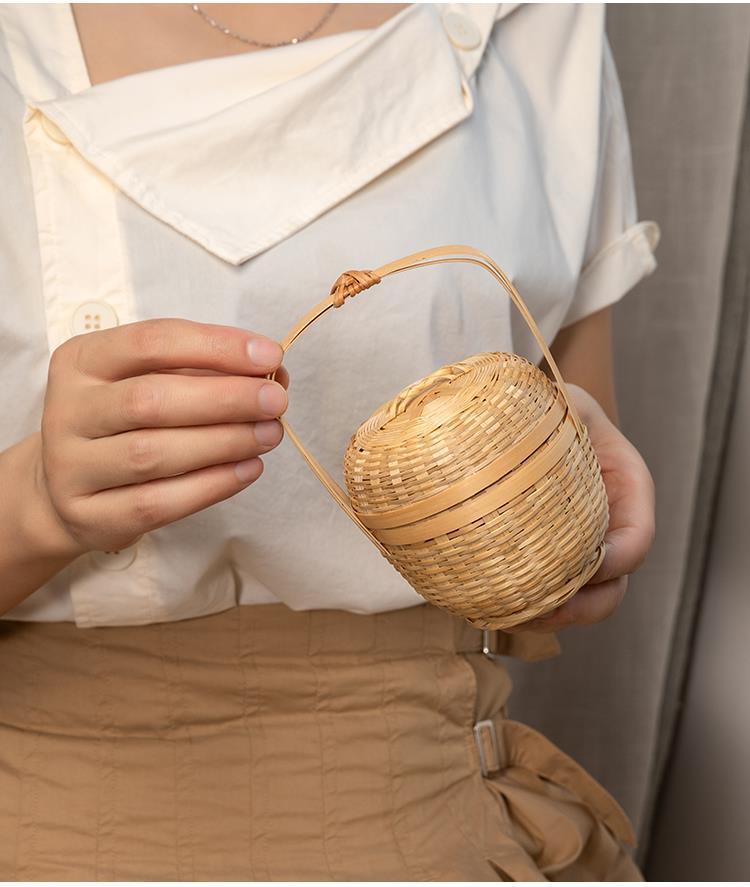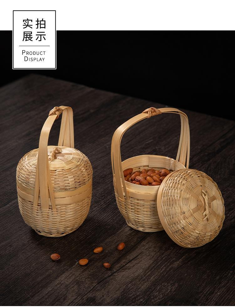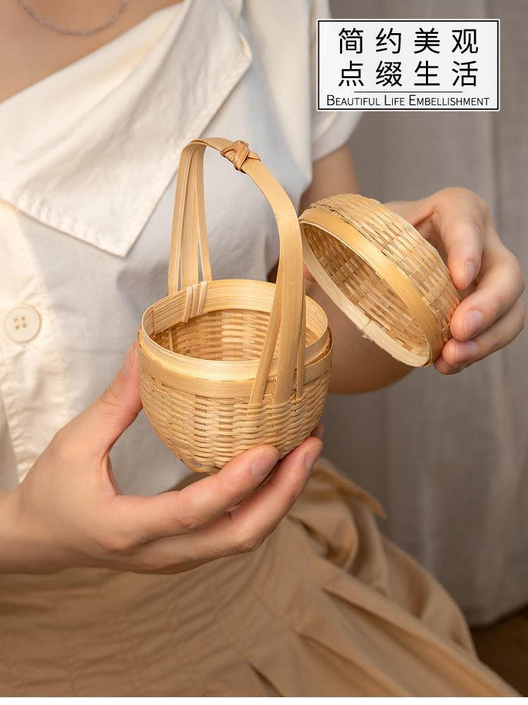 ミニ竹バスケット蓋付き飾り小竹バスケット竹製品精編手提げバスケット創意小竹バスケット工芸品
