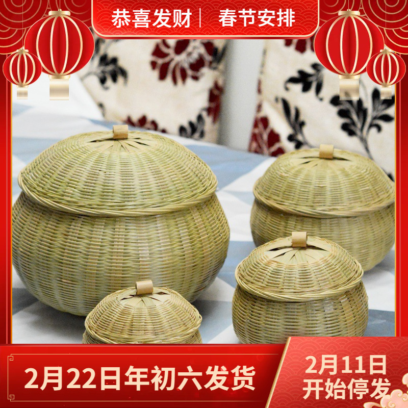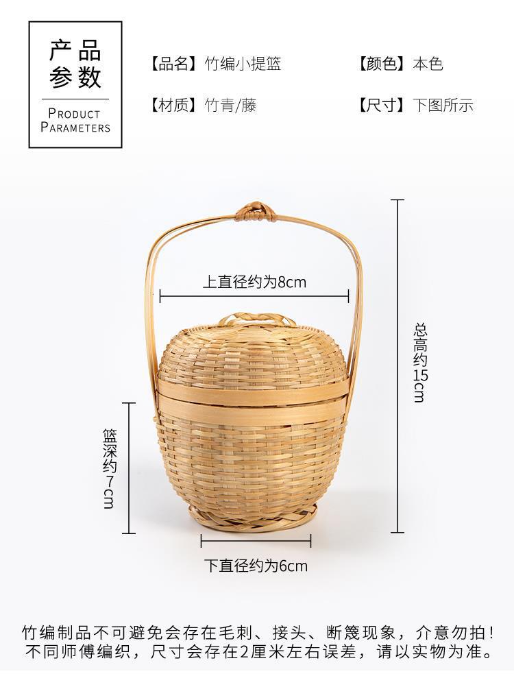迷你竹编篮带盖子装饰小竹篮子竹制品精编手提篮实用小竹筐工艺品