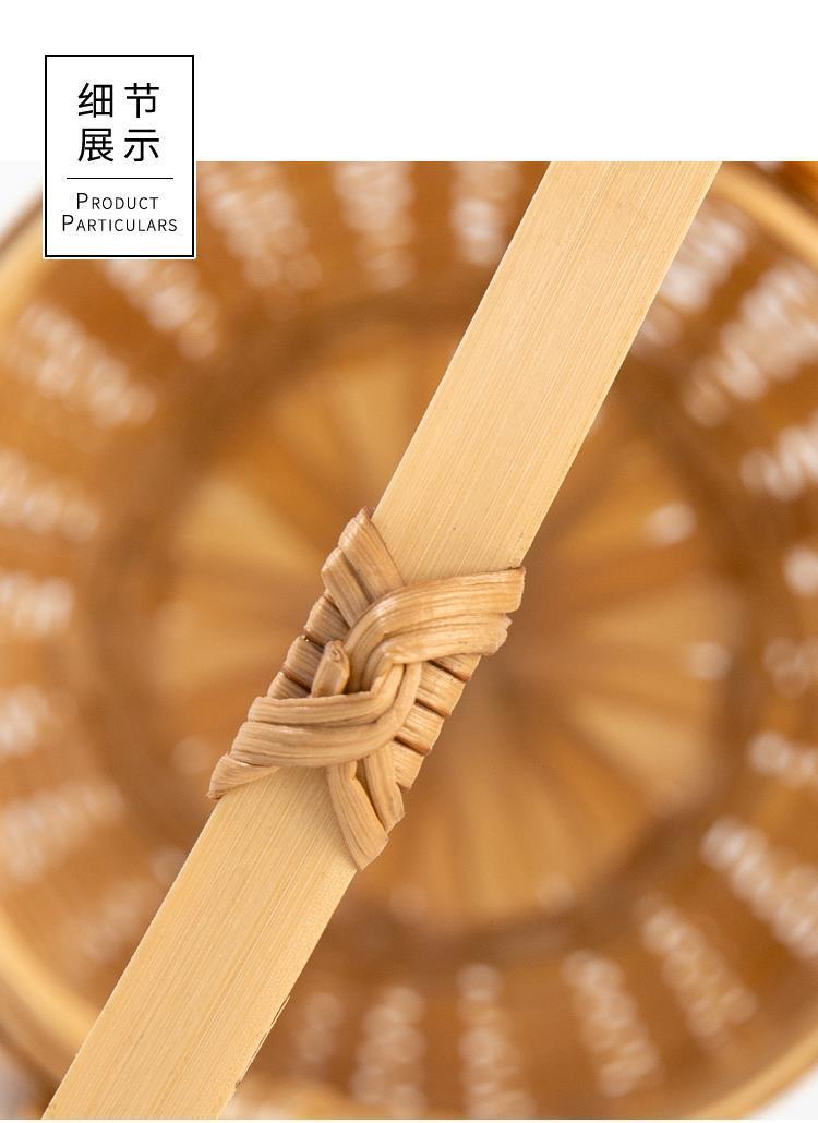竹编小提篮圆形提手茶点水果篮子 糕点托盘创意小竹篮 多层竹编篮