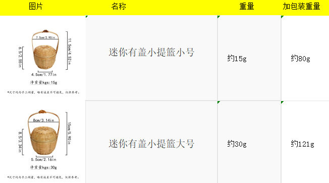规格 迷你有盖小提篮小号,迷你有盖小提篮大号