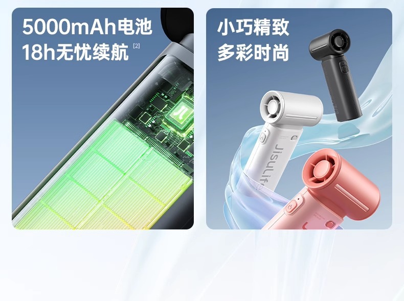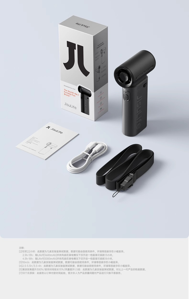 JISULIFE 小型ファンハンド高速省エネ小型風力砲ブラックテクノロジー 25H バッテリー寿命 9000mah 大容量