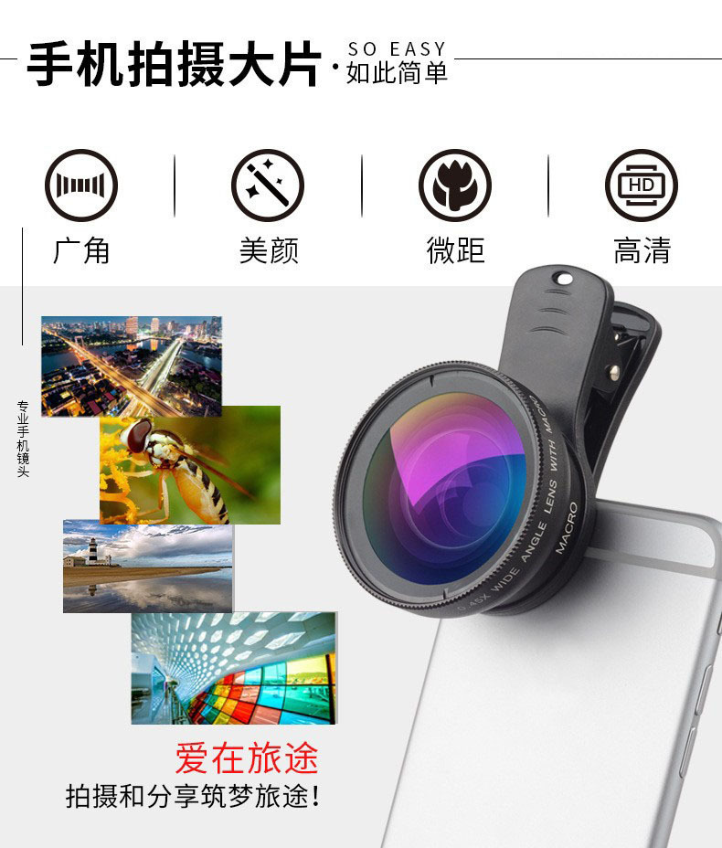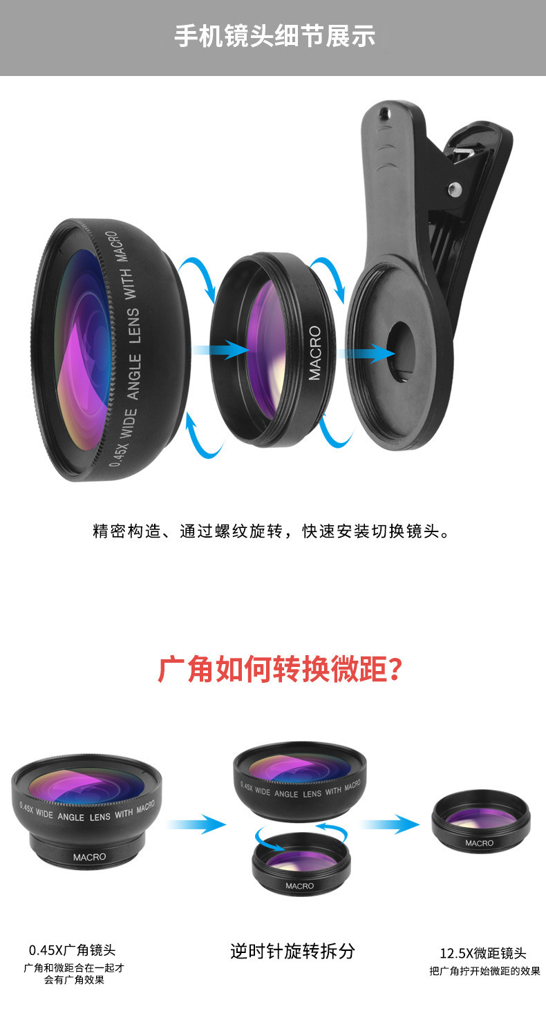 厂家批发手机镜头0.45X广角镜头15X微距手机外置摄像头高清无畸变