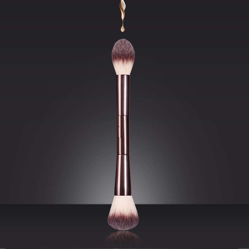 クロスボーダーメイクアップ双頭パウダーブラシ人工繊維アルミチューブ美容メイクアップツールブラシメイクアップブラシパウダーブラシファンデーション