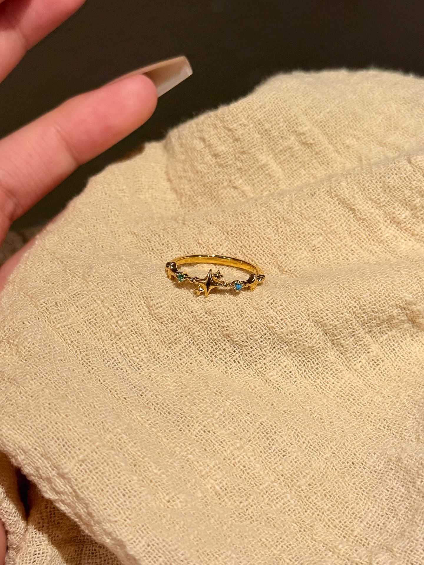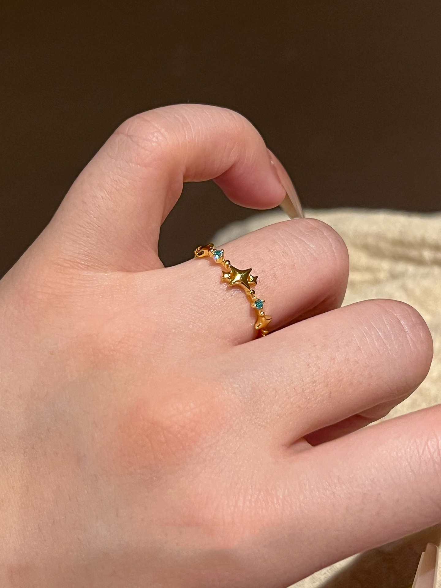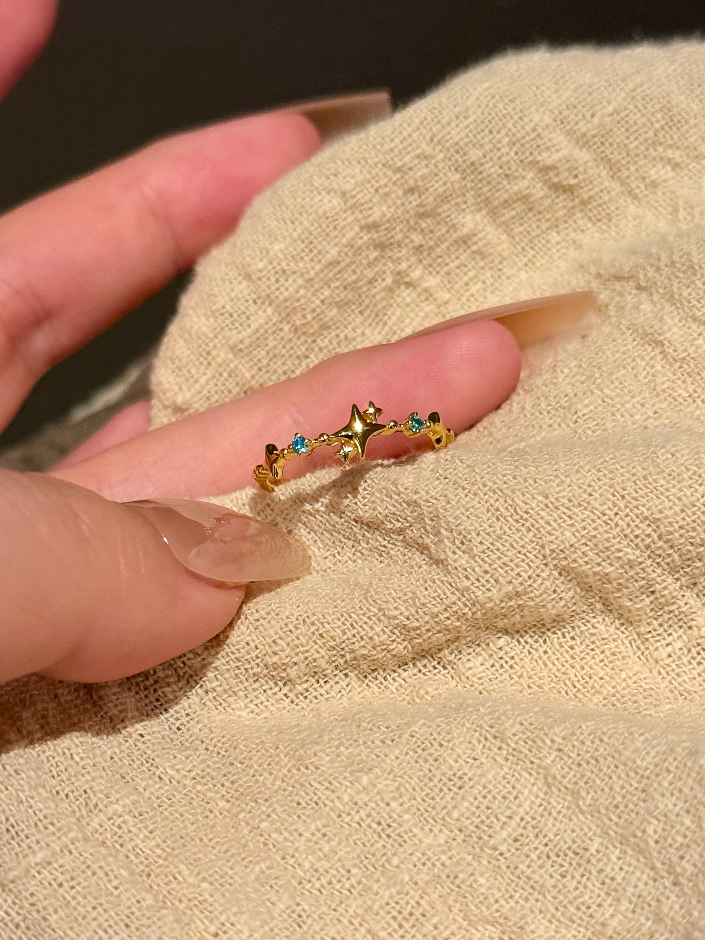小红书爆款小清新金色少女魔法小众复古高级开口戒指彩宝轻奢指环