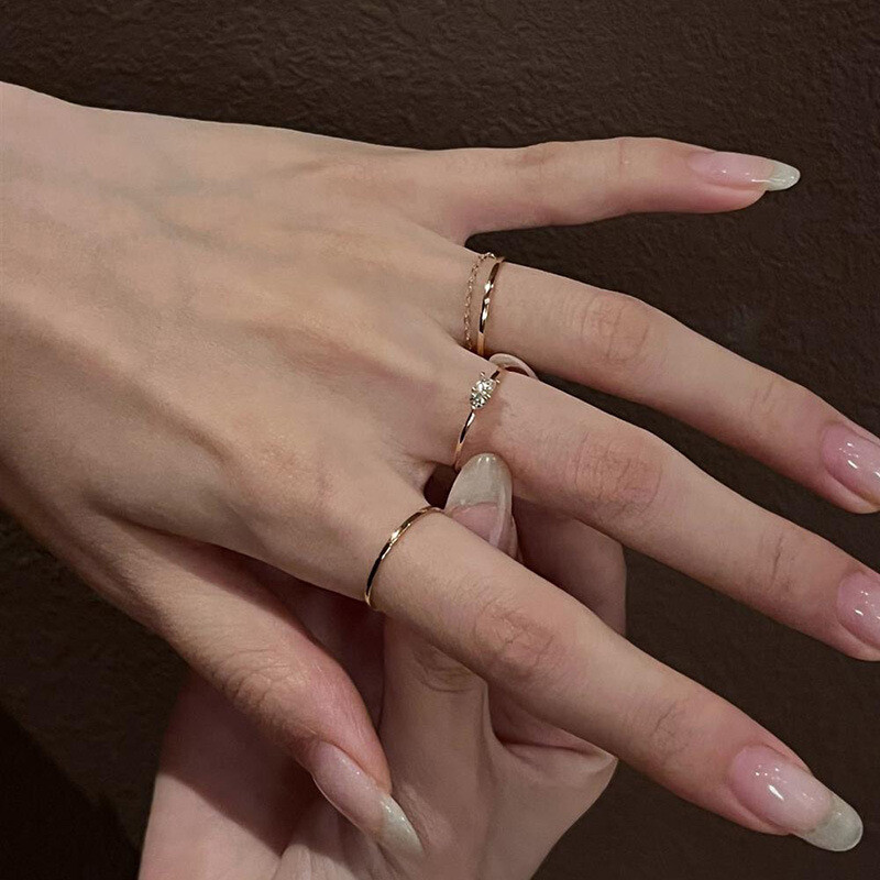 小红书法式极简风素圈百搭戒指小众时尚高级感叠戴款指环一件代发