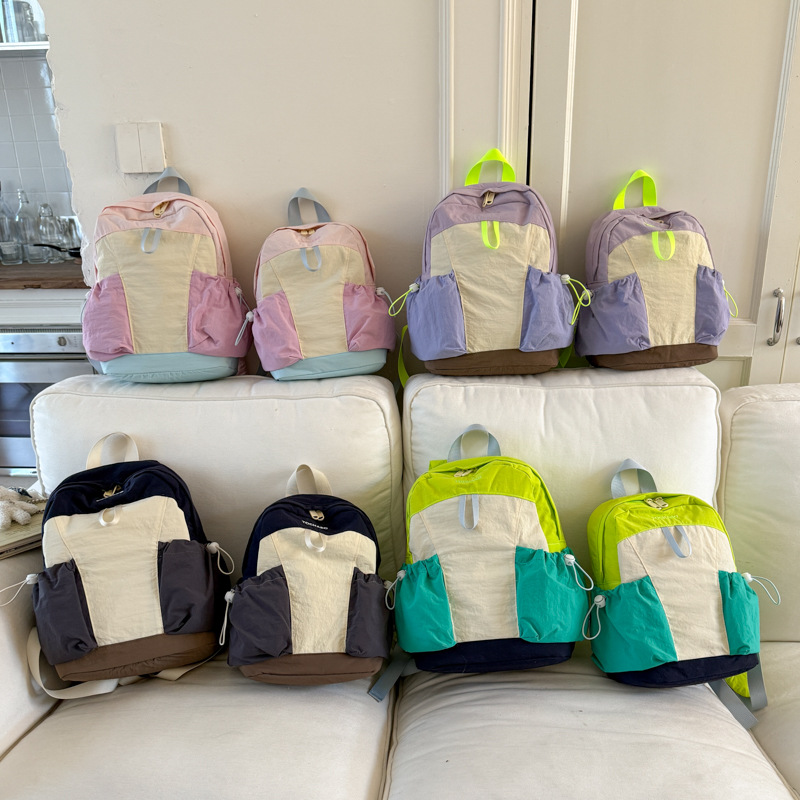 新款时尚撞色男女童双肩包高颜值小学生书包韩版洋气抽绳儿童背包