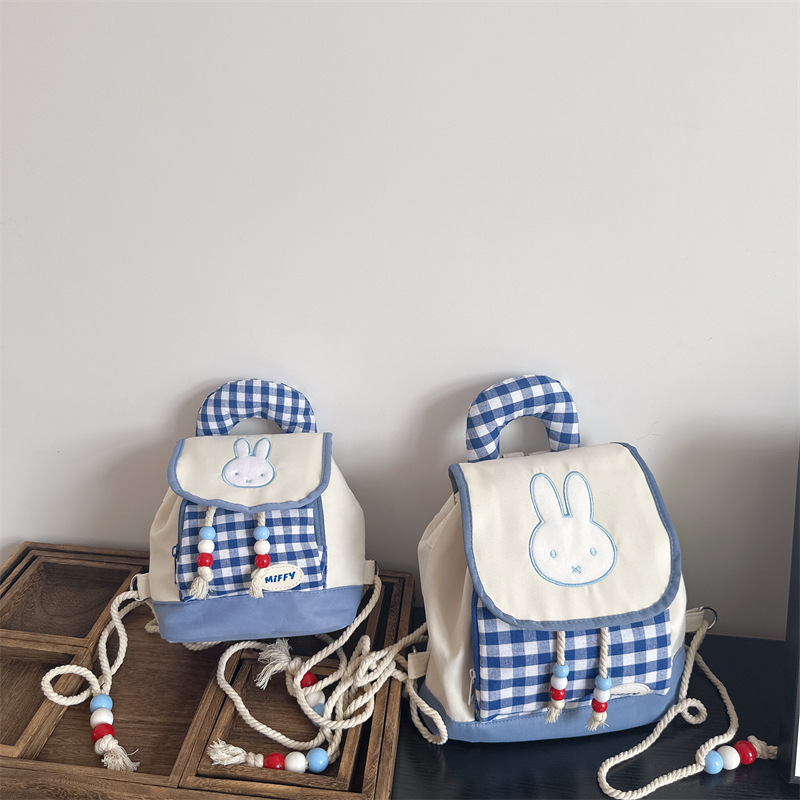 幼儿园中小班宝宝书包可爱小兔子男女童双肩包洋气格子亲子背包潮