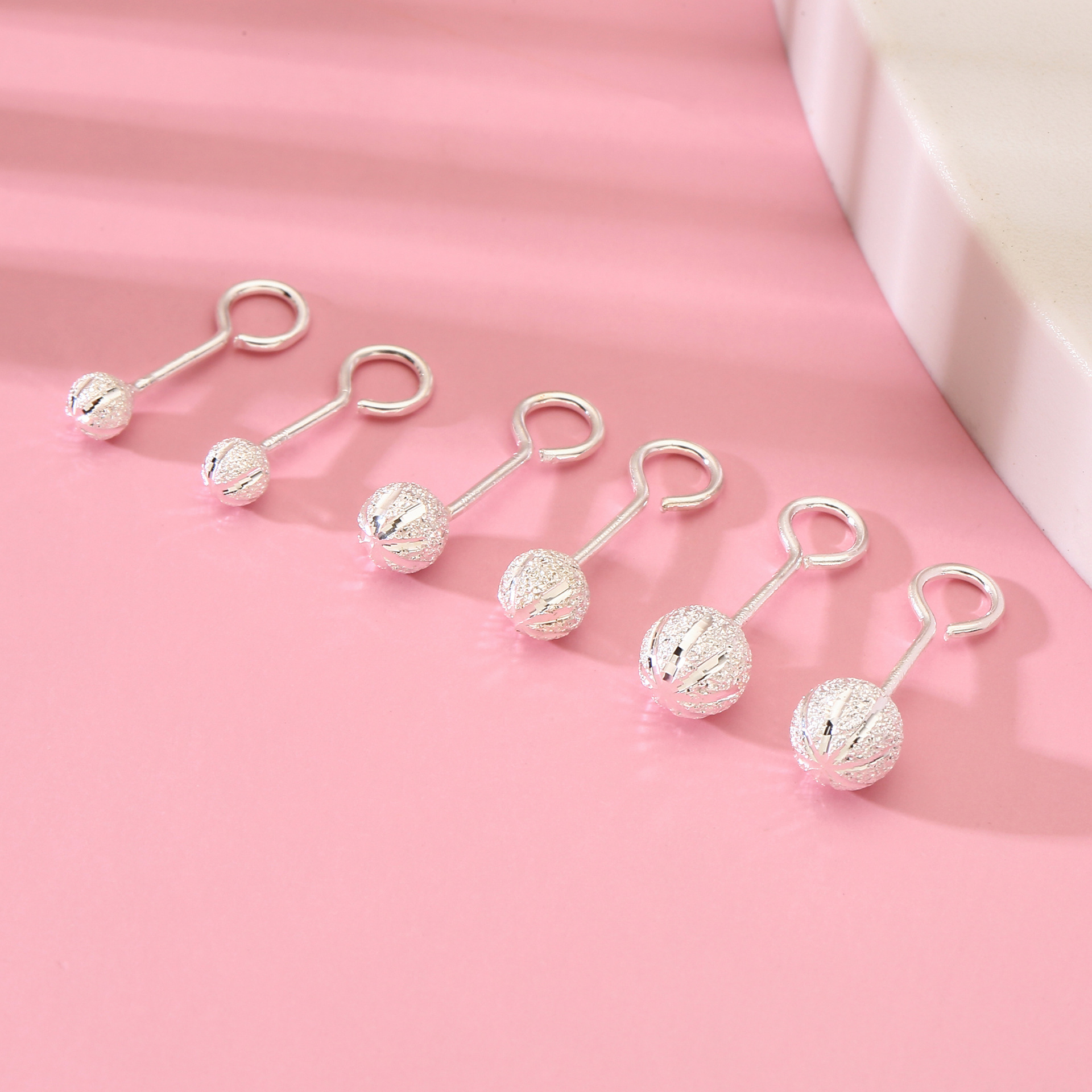 8383号足银990弯钩订沙车花耳钉珠男女圆珠养耳小女生银耳钉饰品