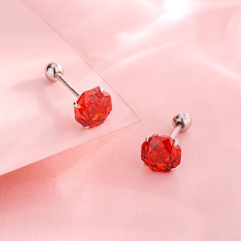 8888号S999纯银螺丝耳钉玫瑰红锆石8MM爆闪耳骨钉耳饰直播爆款