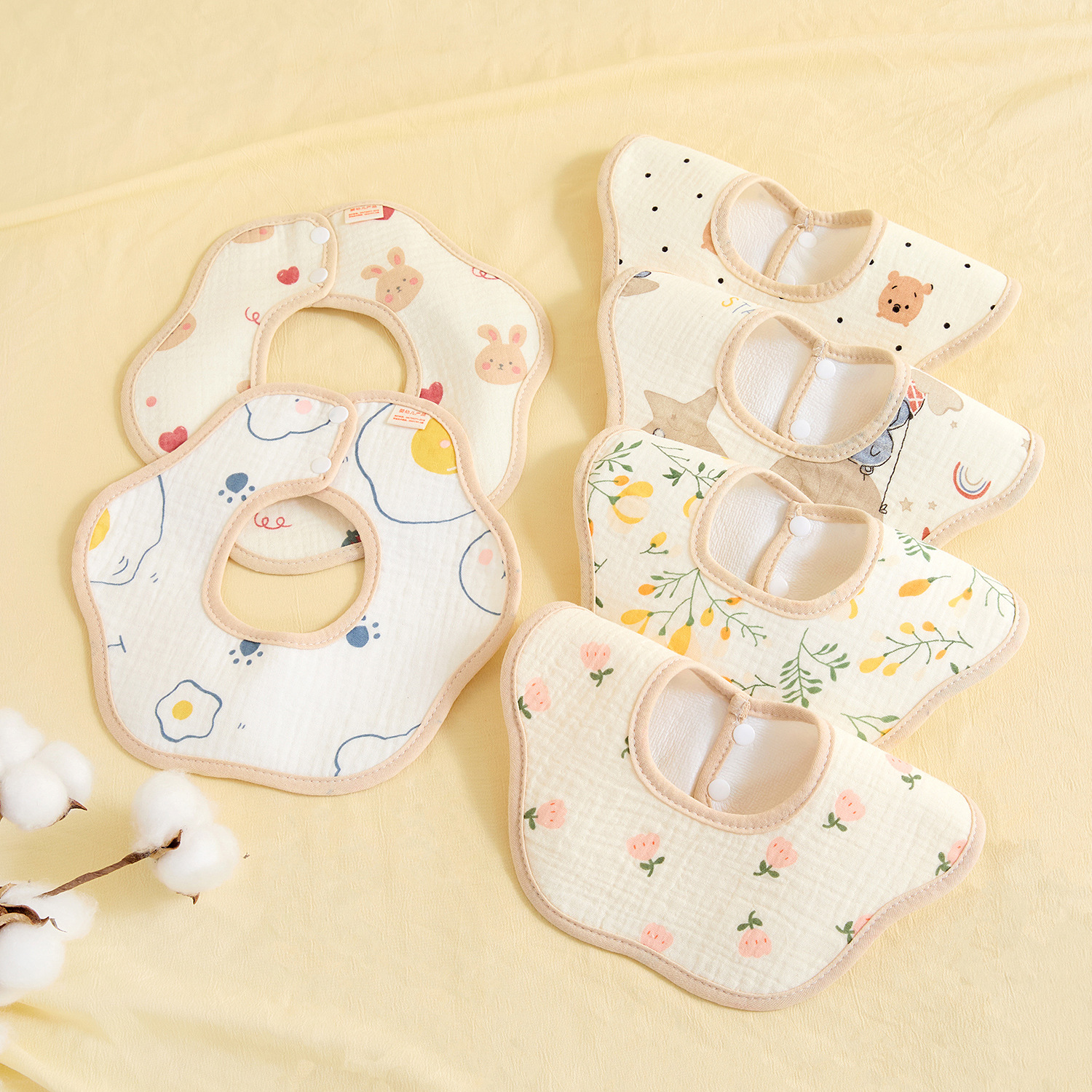 ベビーよだれかけ クラスA 8層ガーゼ 花びら型よだれかけ 漫画プリント 子供用よだれかけ 回転式サイドオープンよだれかけ
