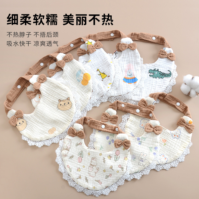 6層ガーゼレース襟付きシフォンスタイ、韓国風インスタ純綿ベビーよだれかけ、プリンセス風フリル付き