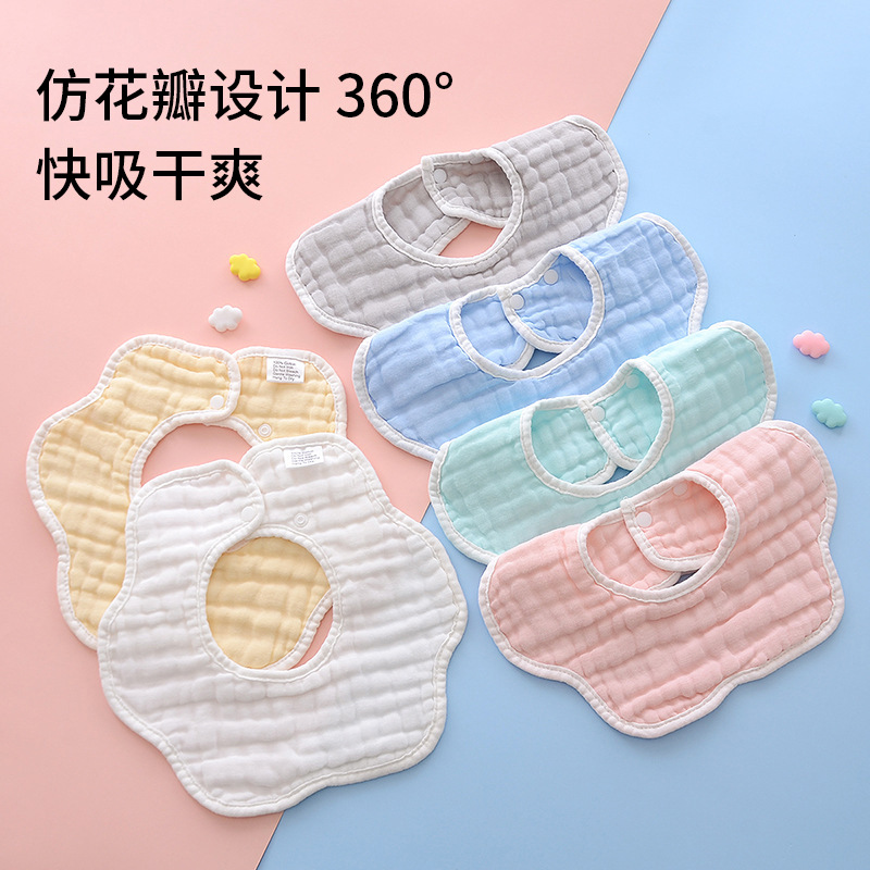 防水よだれかけ 新生児用花びら型よだれかけ 360 ° 回転式吐き戻し防止よだれかけ、吸水性のある綿ガーゼ
