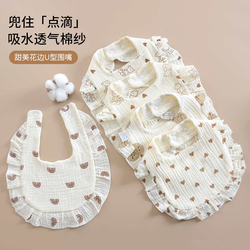 インススタイルベビーよだれタオル純綿タイプA6層ガーゼU字型よだれかけフリルベビー嘔吐防止ミルクタオル
