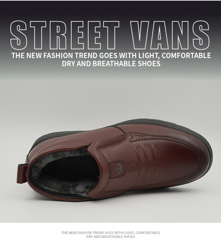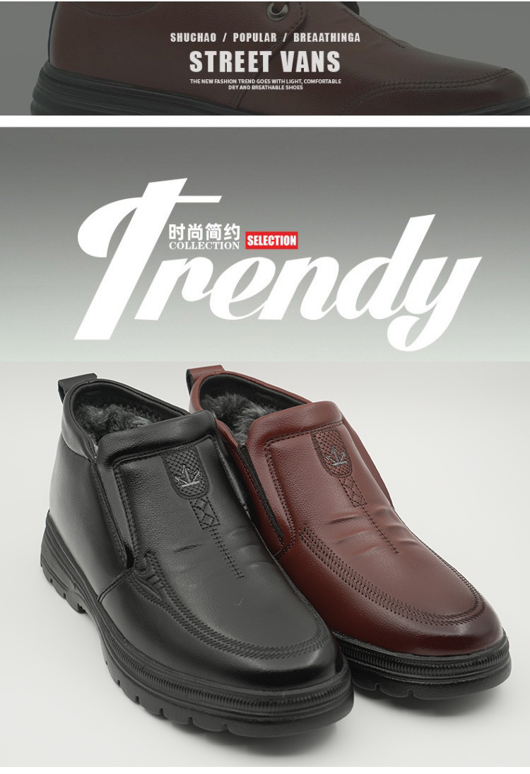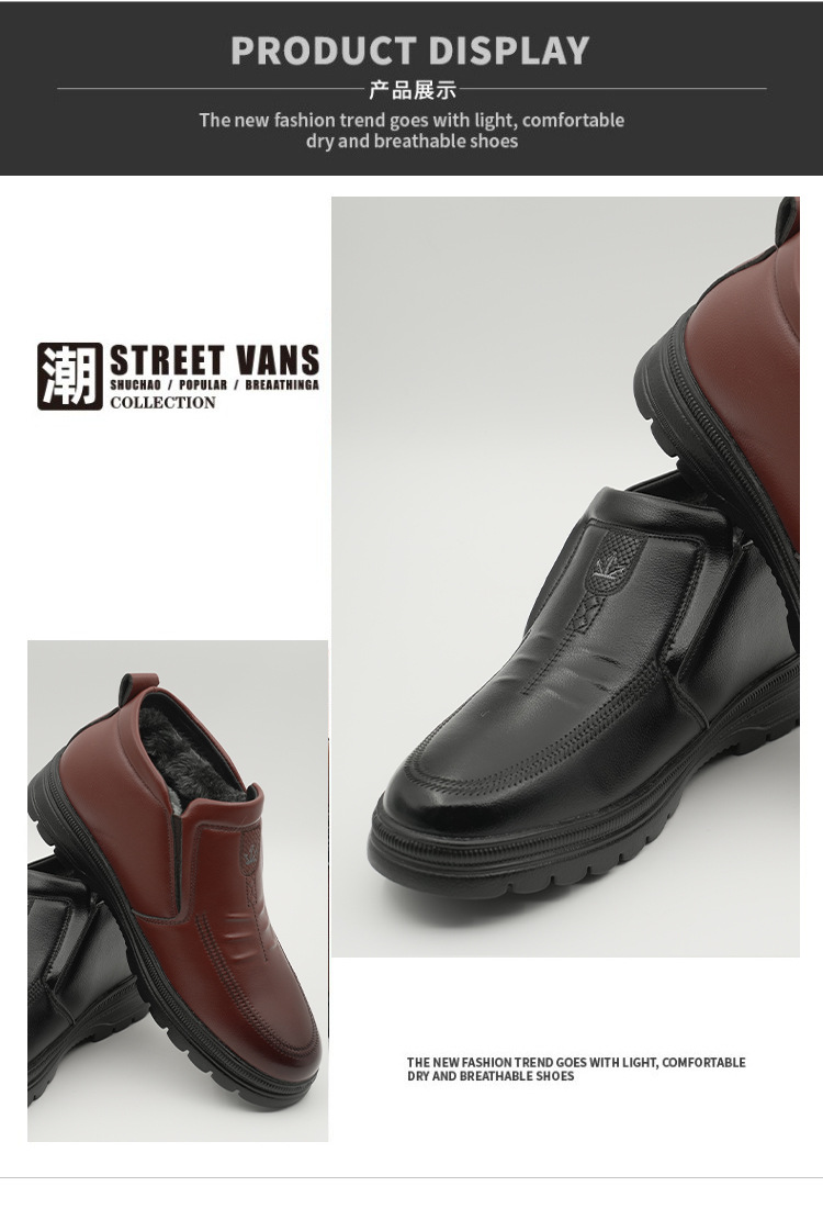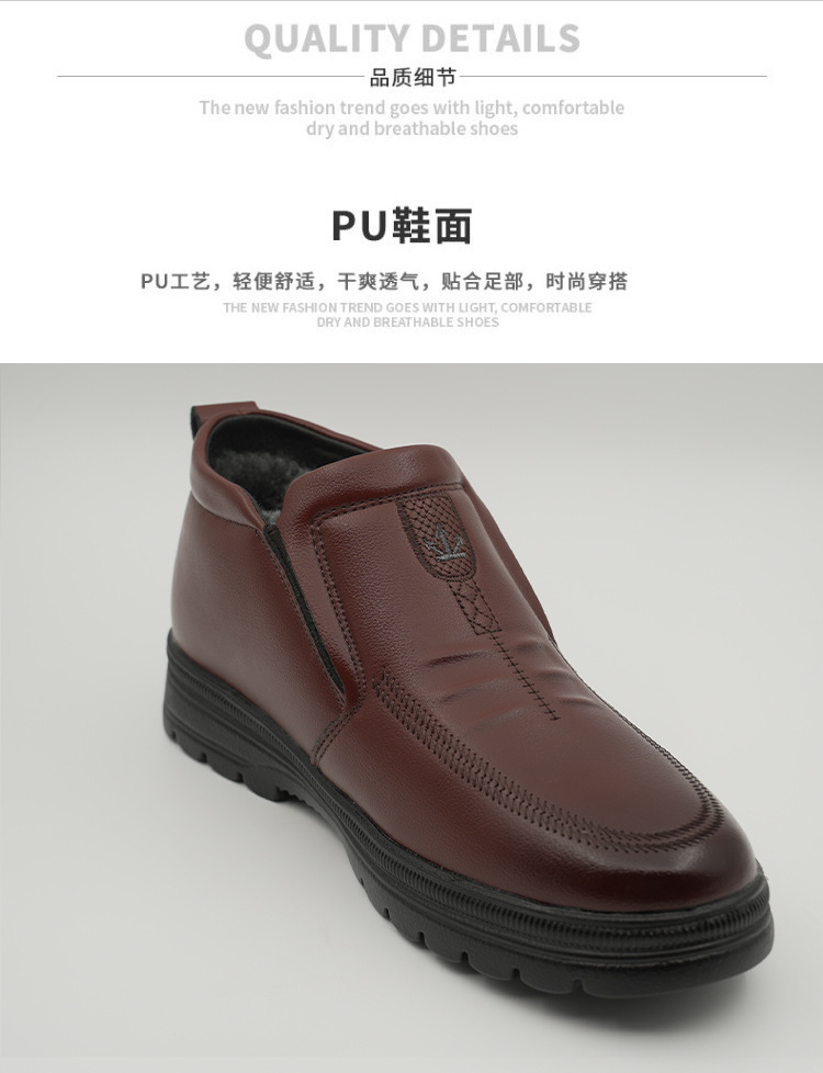 男士休闲皮鞋秋冬新款加绒棉鞋中老年防滑爸爸鞋休闲百搭保暖皮鞋